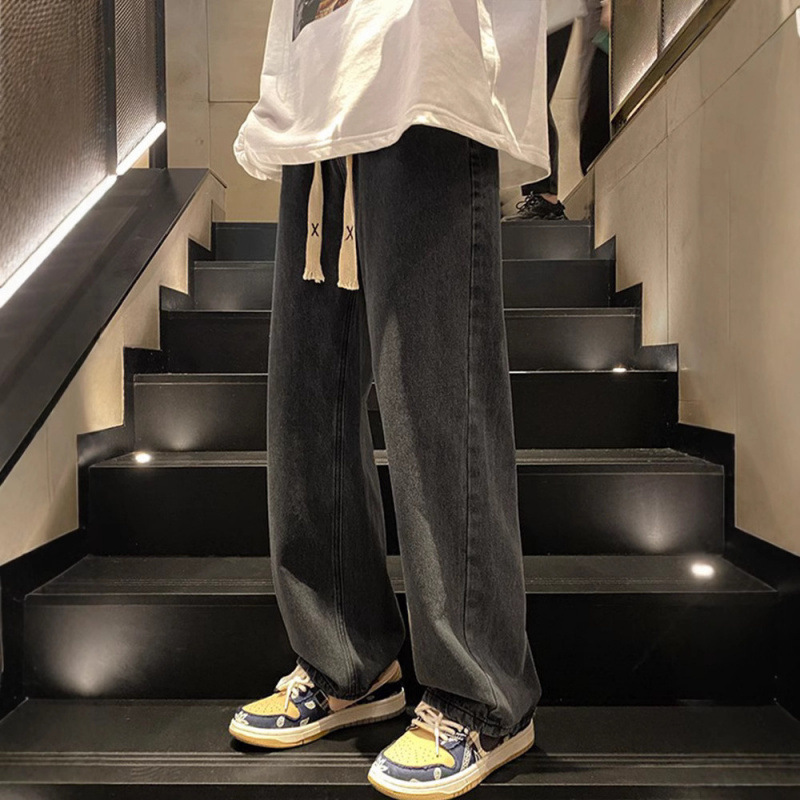 남성용 레트로 청바지 봄 여름 스트레이트 루즈 대형 트렌디 브랜드 와이드 레그 아메리칸 하이 스트리트 트렌디 캐주얼 롱 팬츠스토어 가기
