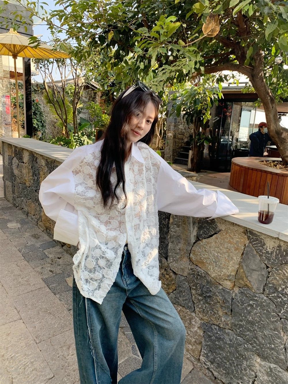 해변 휴가 느슨한 선 스크린 레이스 셔츠 여성의 여름 얇은 엉덩이 커버 쉬폰 셔츠 긴 소매 탑 카디건스토어 가기