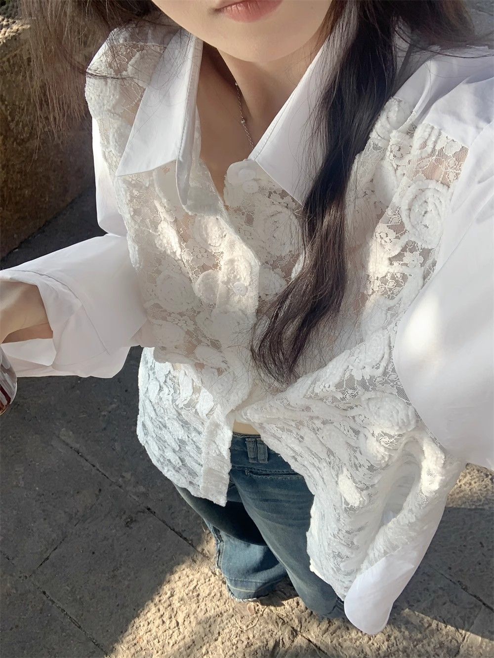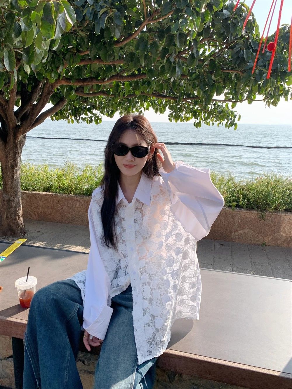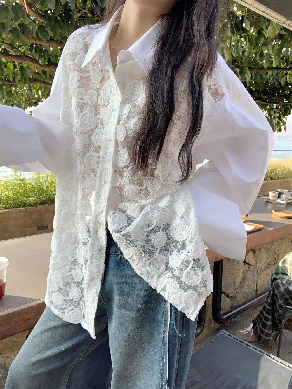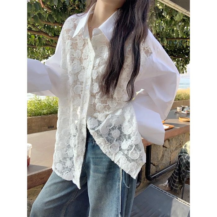 해변 휴가 느슨한 선 스크린 레이스 셔츠 여성의 여름 얇은 엉덩이 커버 쉬폰 셔츠 긴 소매 탑 카디건