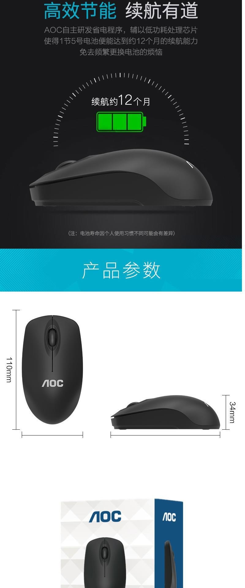 AOC MS320 무선 마우스 2.4G 노트북 데스크탑 오피스 비즈니스 컴퓨터 미니 침묵 마우스