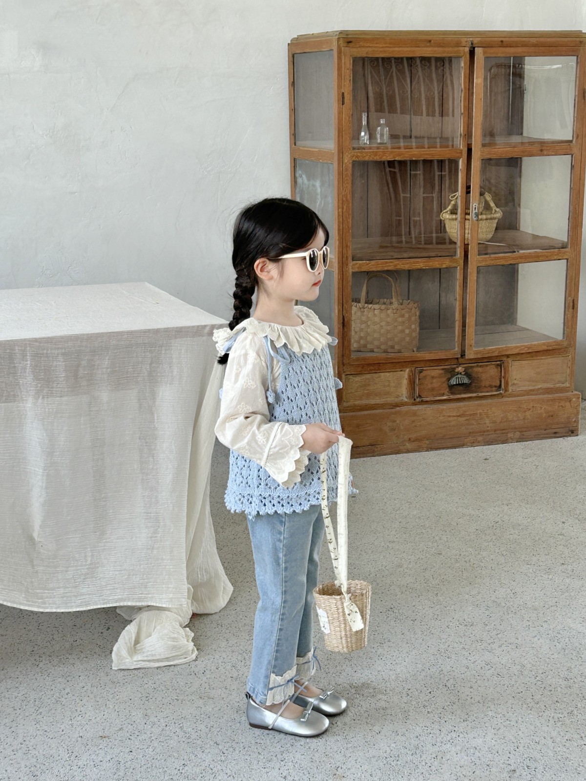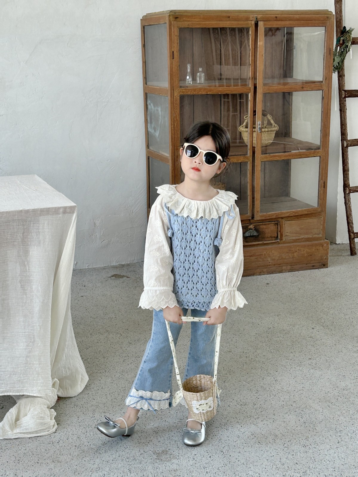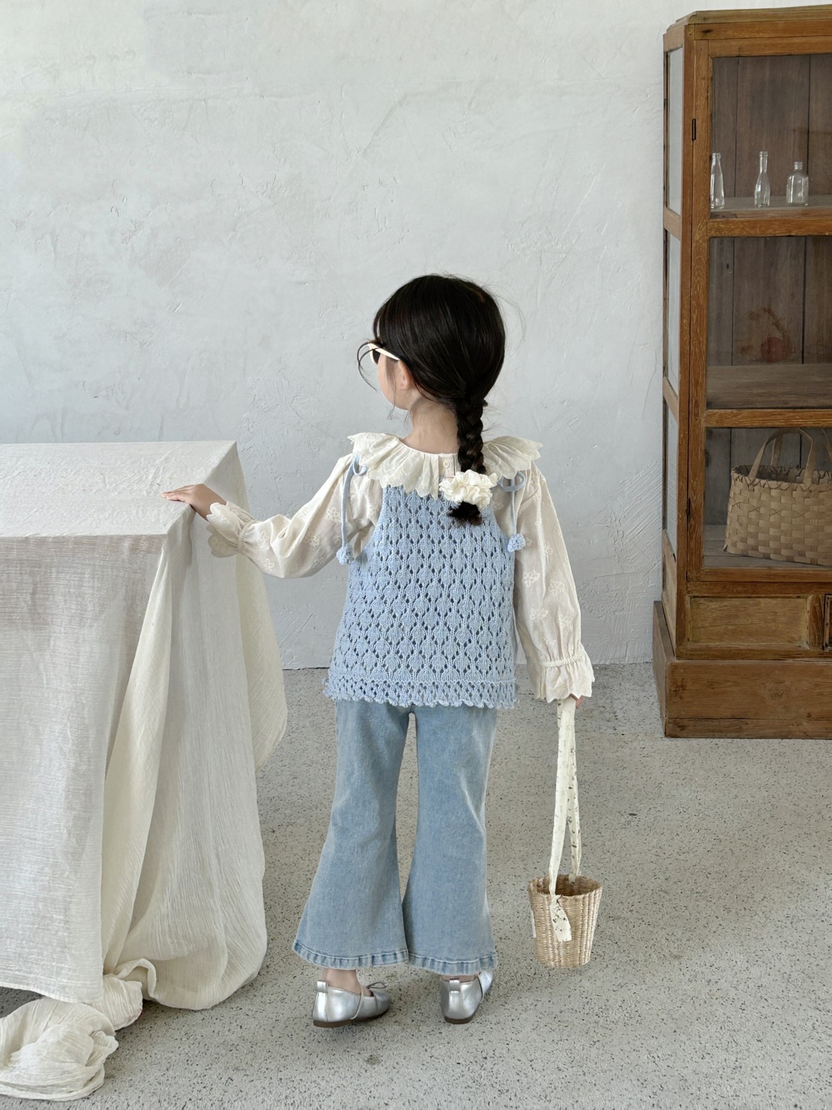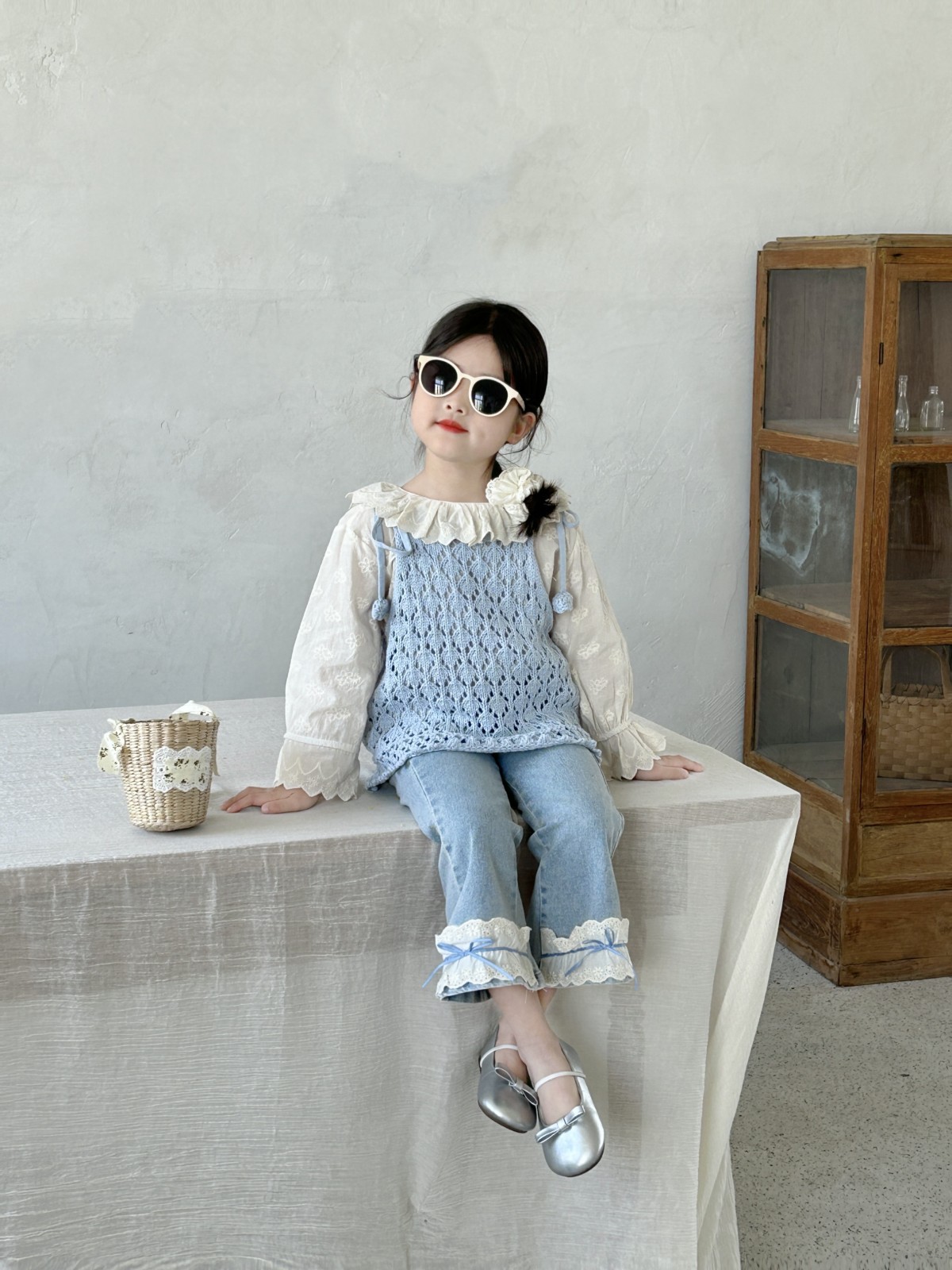 여자 세트 2025 봄 새로운 한국 아기 크로 셰 뜨개질 빈 조끼 청바지 셔츠 세트