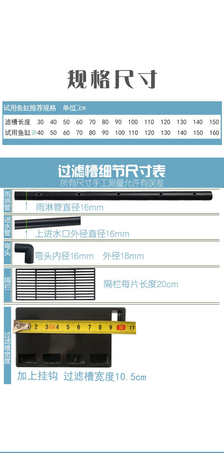 • 후크형 패키지 3은 50cm 이상의 수조에 적합합니다.