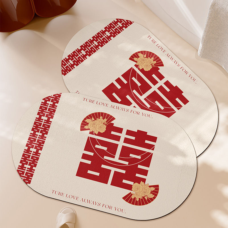 욕실 바닥 매트 웨딩 특별한 해피 워드 Diatom 진흙 발 매트 화장실 물 흡수제 쉬운 건조 미끄럼 방지 마모 바닥 매트