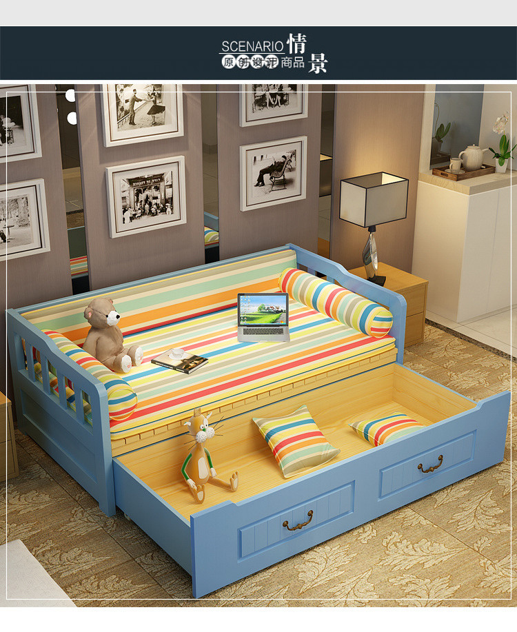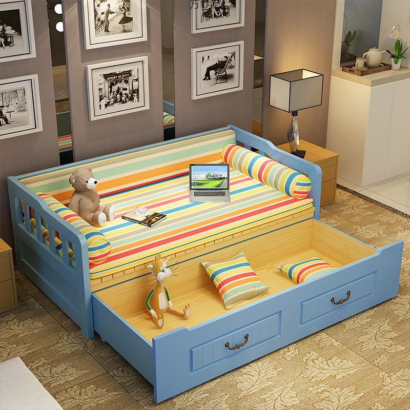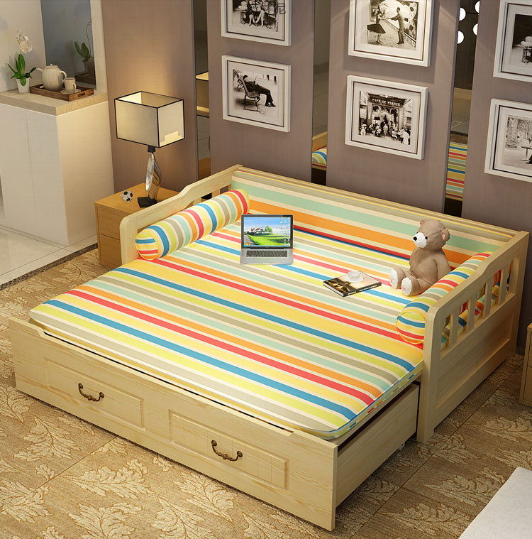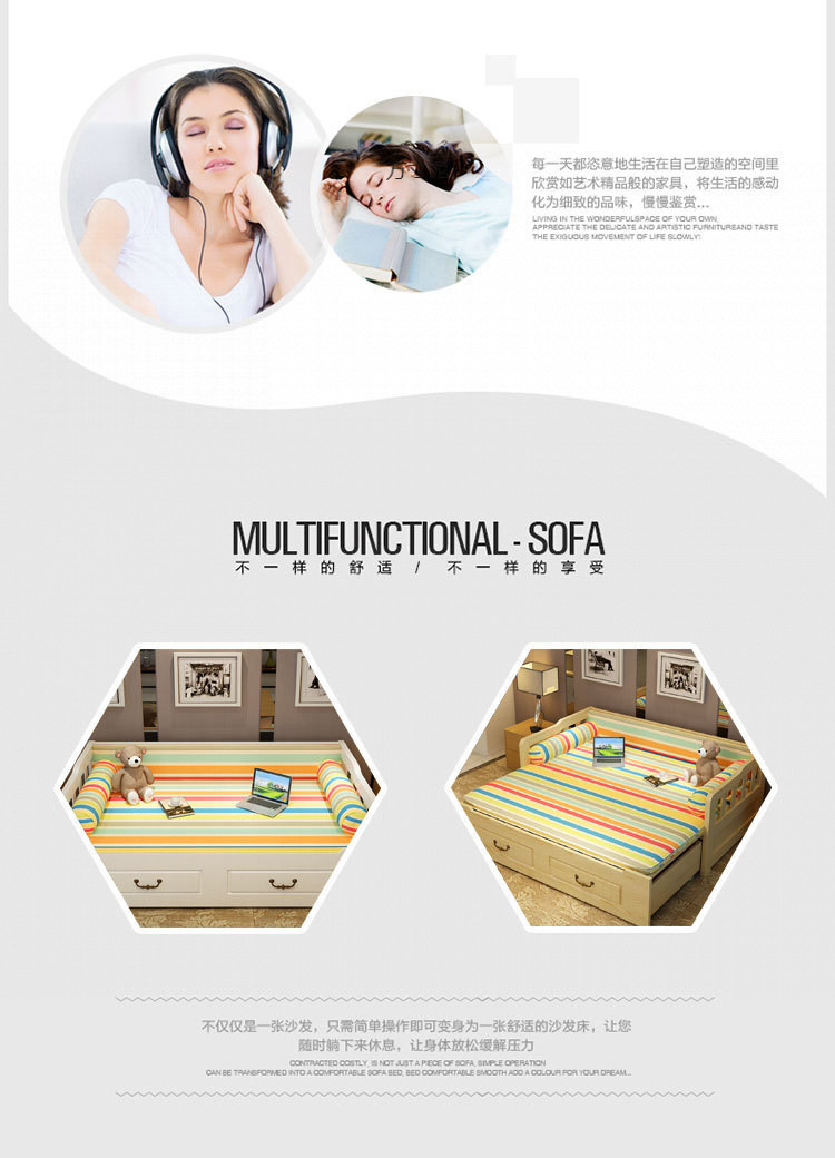 솔리드 우드 소파 침대 접이식 푸시-작은 아파트 다기능 1.5 m 거실 1.8 싱글 더블 앉아 및 슬리핑 듀얼 사용