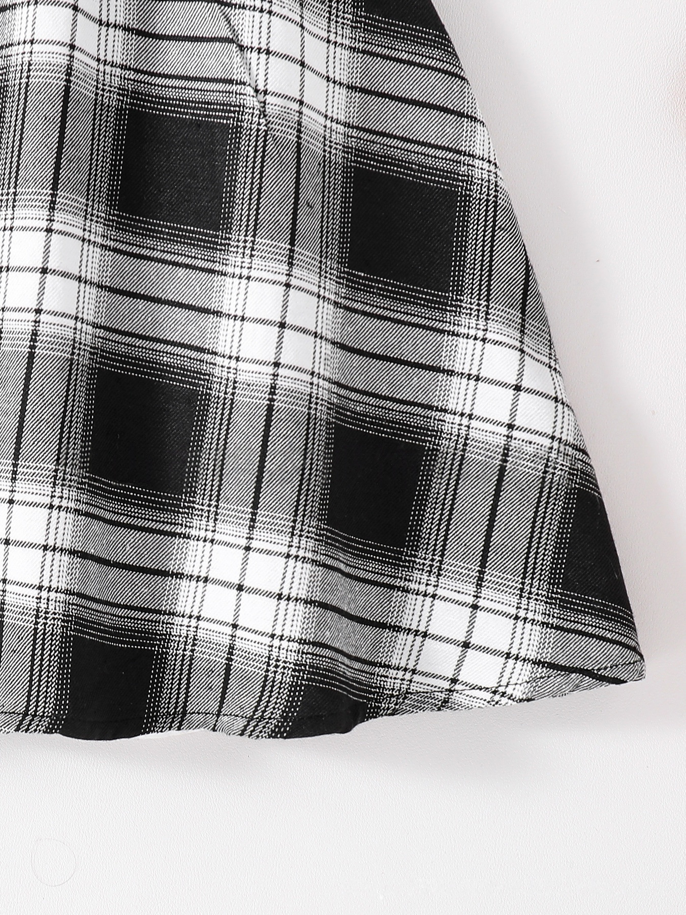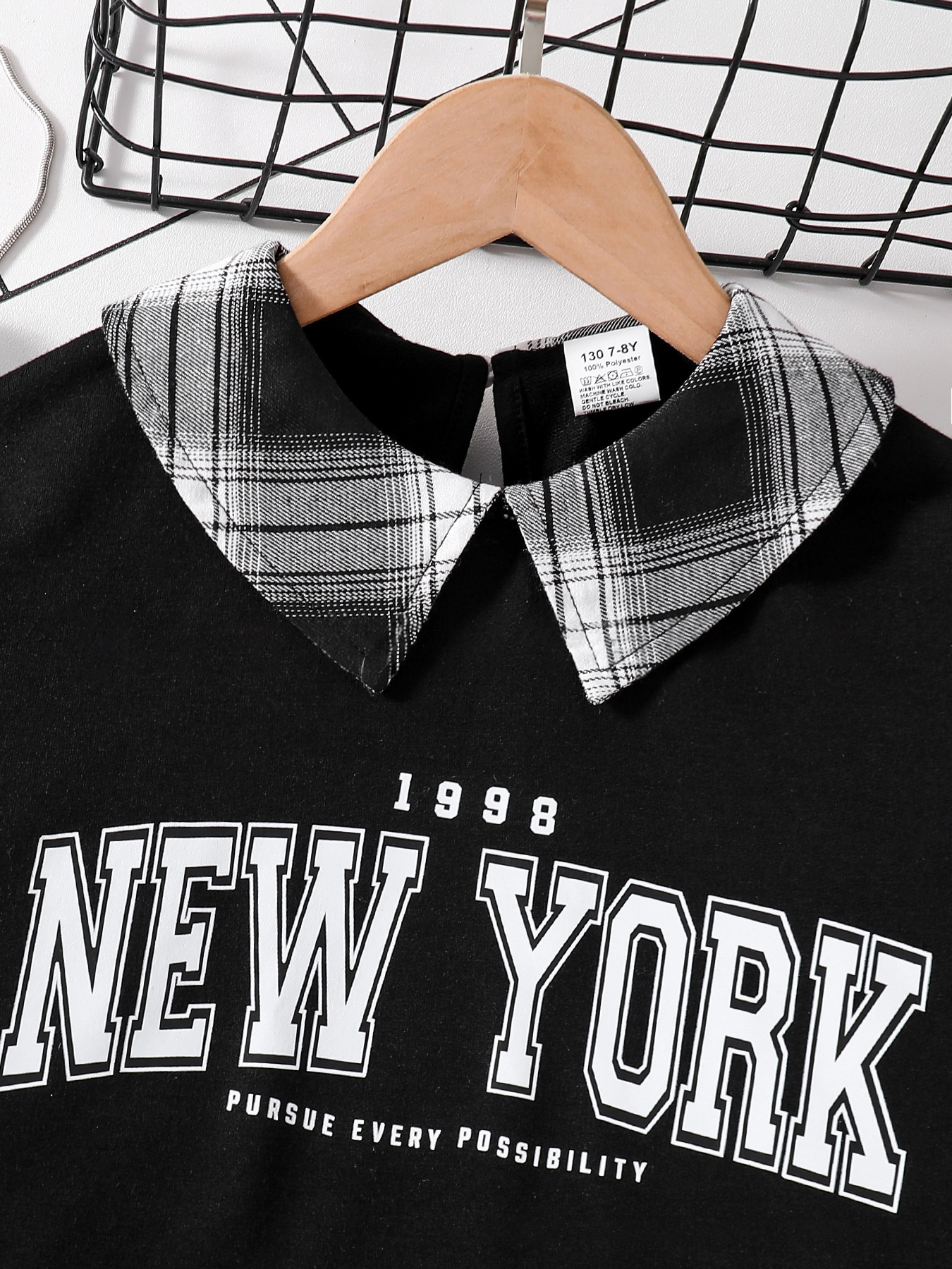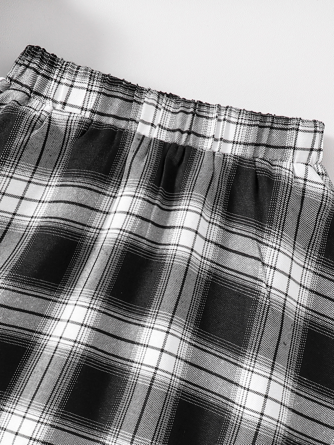 쇼피 중대형 아동 여아용 레터링 긴팔 스웨트셔츠 체크 플리츠 스커트 세트 아동 플리츠 스커트