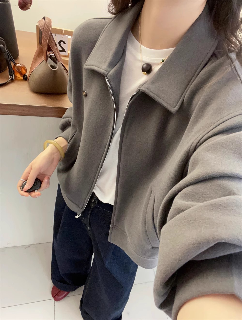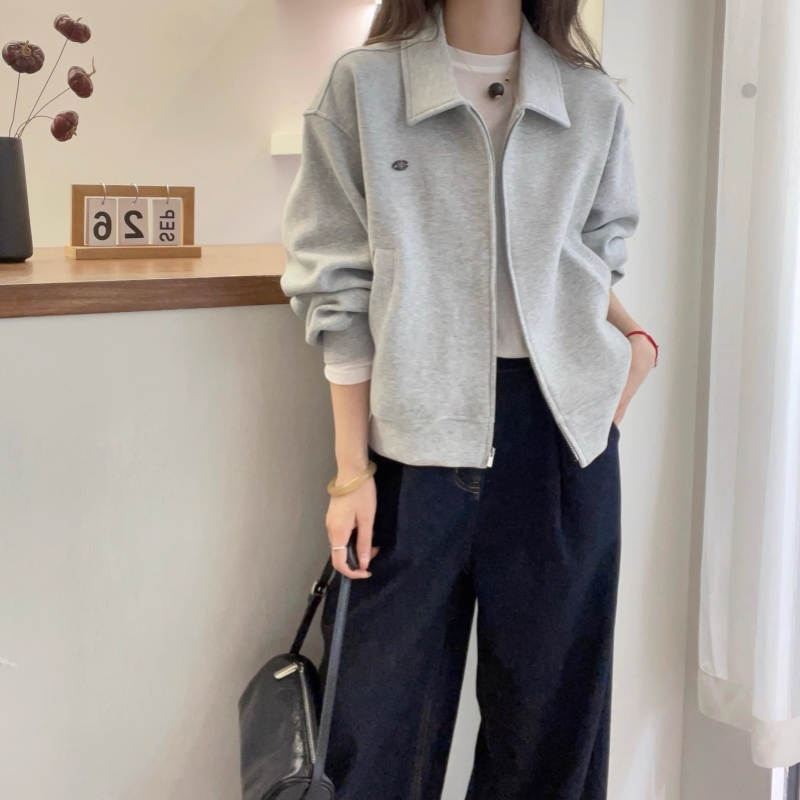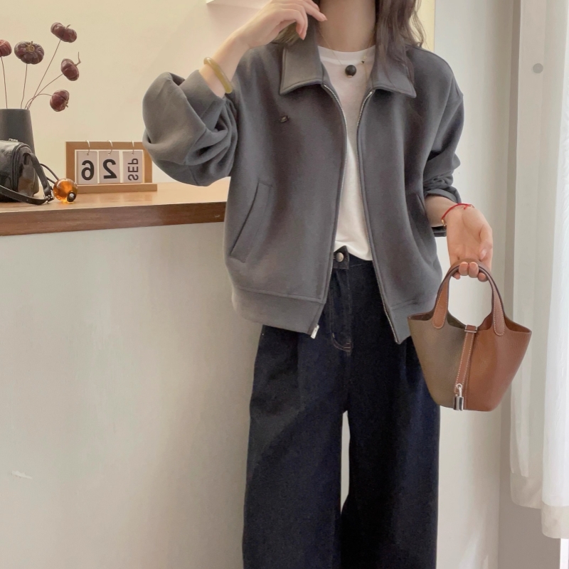 • 그레이 [여성 가을옷 2024 신상/초가을 초가을 플러스 사이즈 의상/완전 예쁘다/올해 인기 예쁘다//유럽식 작은 셔츠/짧은 스타일/패셔너블하고 나이를 줄여주는 외국 스타일