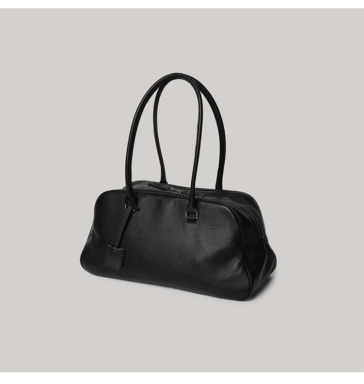 여성을위한 정품 가죽 대용량 토트 백 2025 새로운 하이 엔드 복고풍 통근자 어깨 볼링 보스턴 백