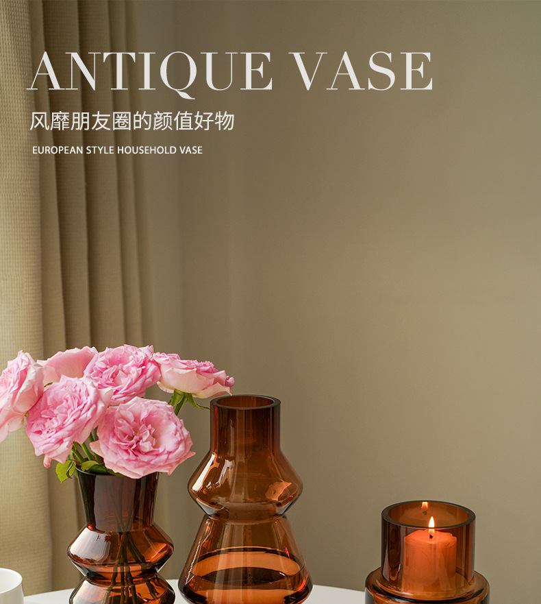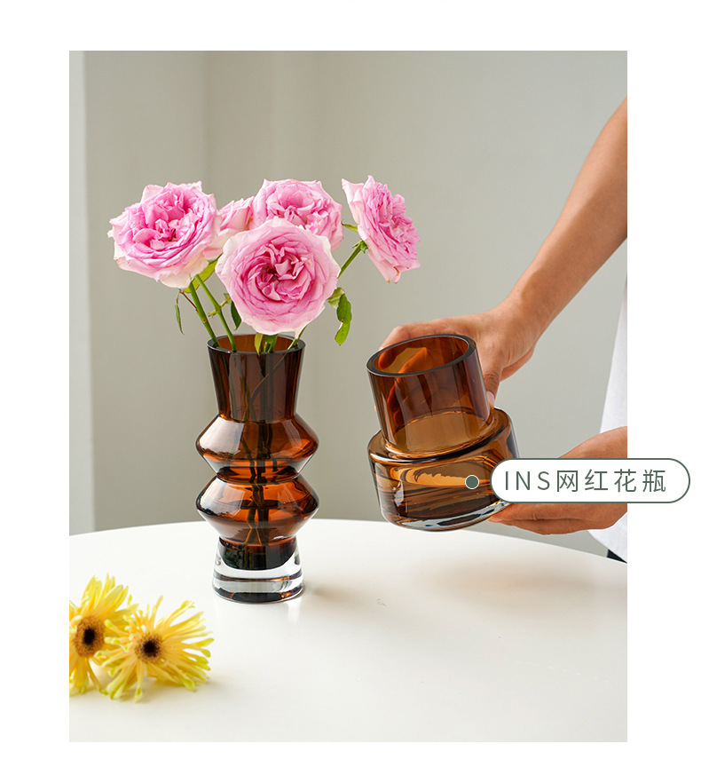 고급 센스 인 스타일 꽃병 라이트 럭셔리 장식품 디자인 센스 유리 꽃 꽃 꽃 꽃 레이아웃 거실 데스크탑 장식스토어 가기
