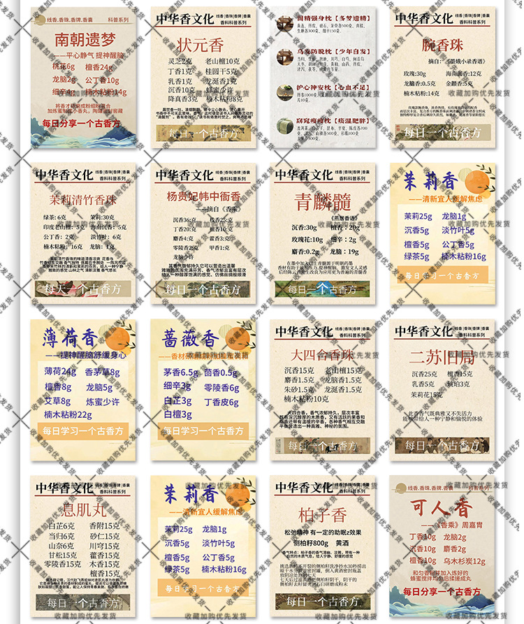중국 전통 문화 지식 학습 향 문화 향 주머니 공식 만들기 스티커 96개 DIY 휴대폰 케이스 데스크탑스토어 가기