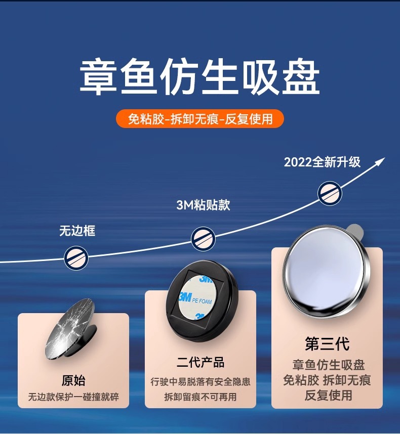 소형 원형 거울 백미러 자동차 후진 도구 사각지대 보조 거울 반사경 360도 흡입 컵 초투명 거울