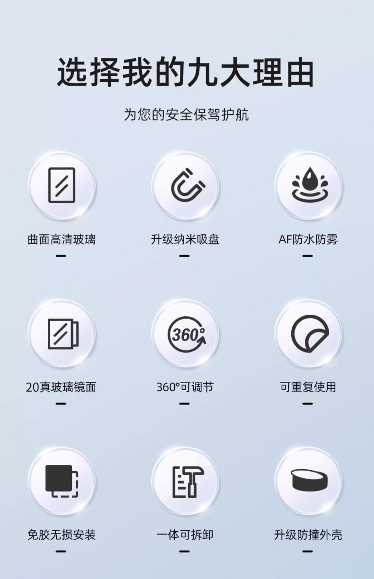 • 방폭 프레임 [20D HD 유리-블랙] 나노 흡착판이 거울 표면을 손상시키지 않으며 고화질 방수