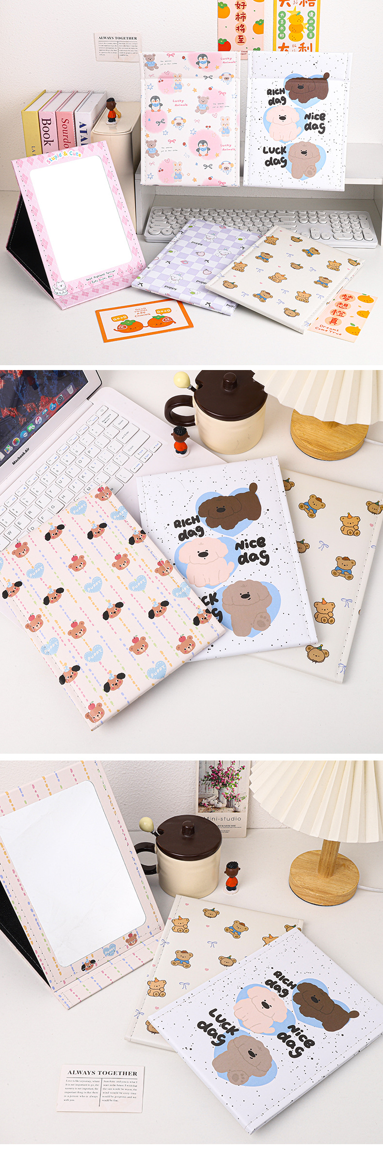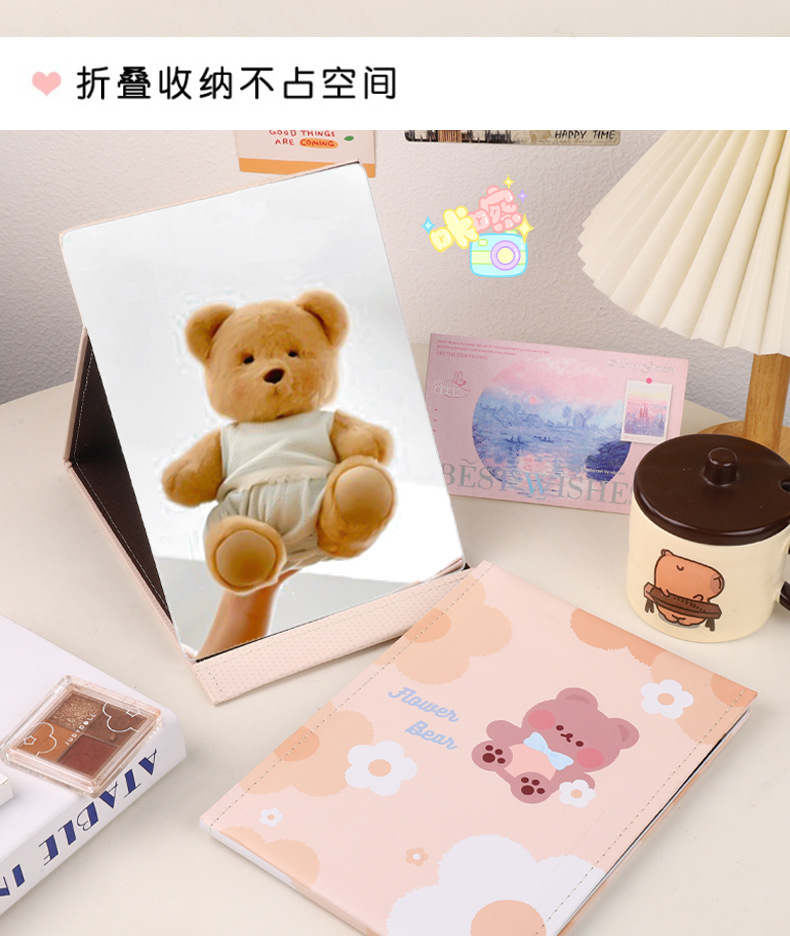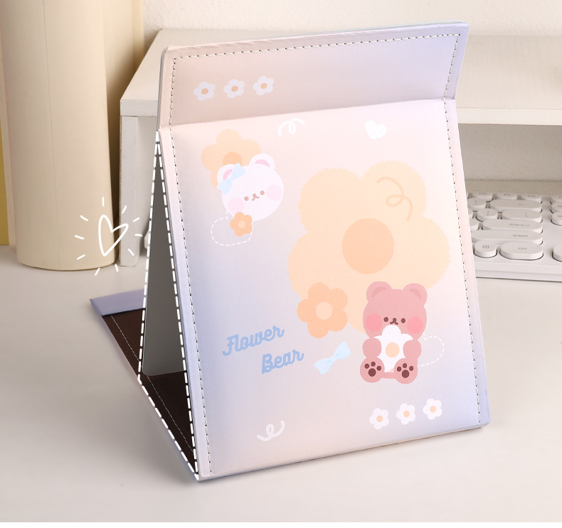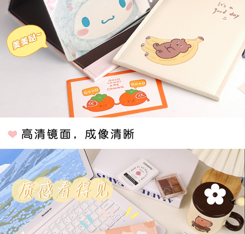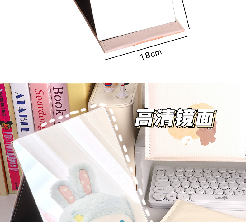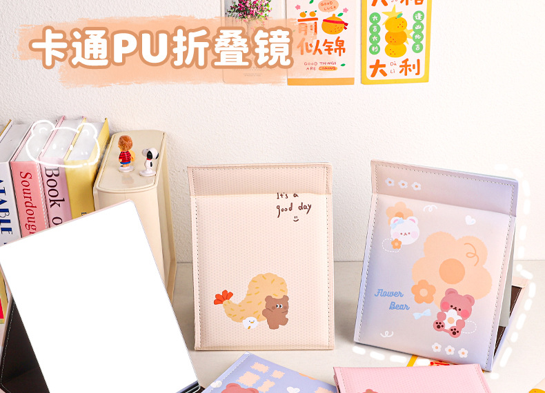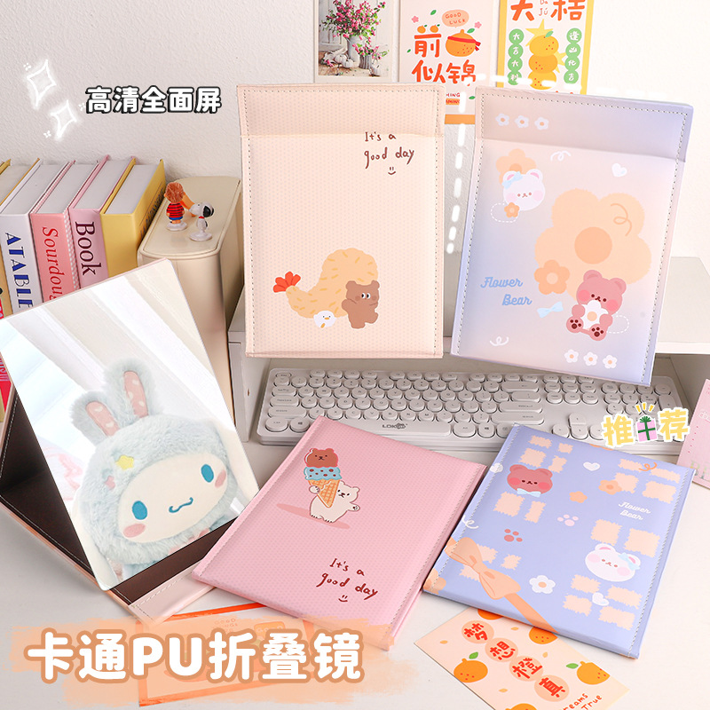 만화 대형 전체 화면 거울 PU 가죽 거울 학생 소녀 휴대용 접이식 데스크탑 화장 거울스토어 가기