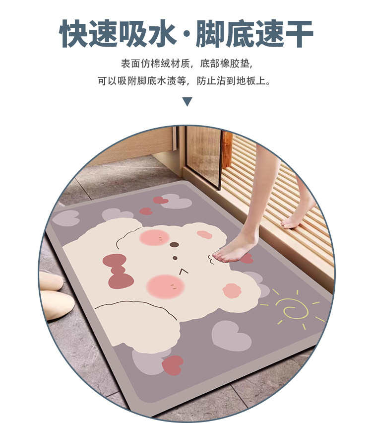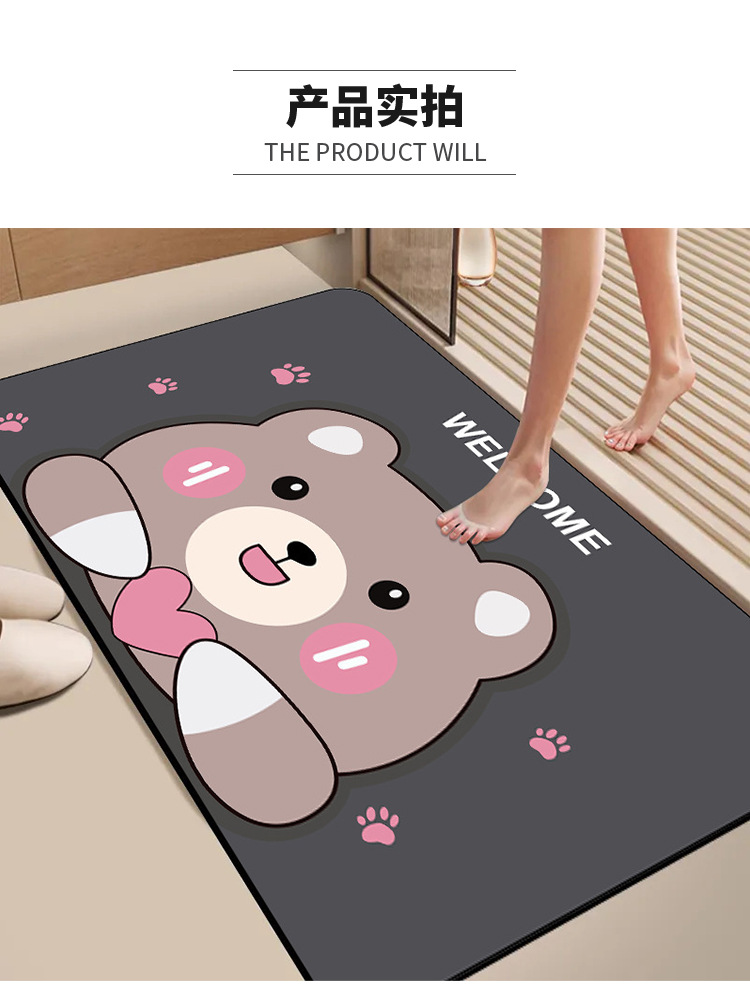 만화 애니메이션 규조토 진흙 바닥 매트, 미끄럼 방지, 내마모성, 먼지 방지, 관리가 쉬운 발 매트, 가정용 흡수성 및 속건성 욕실 바닥 매트스토어 가기