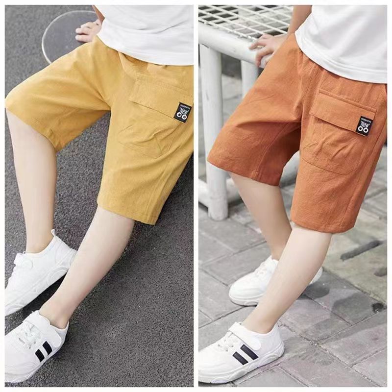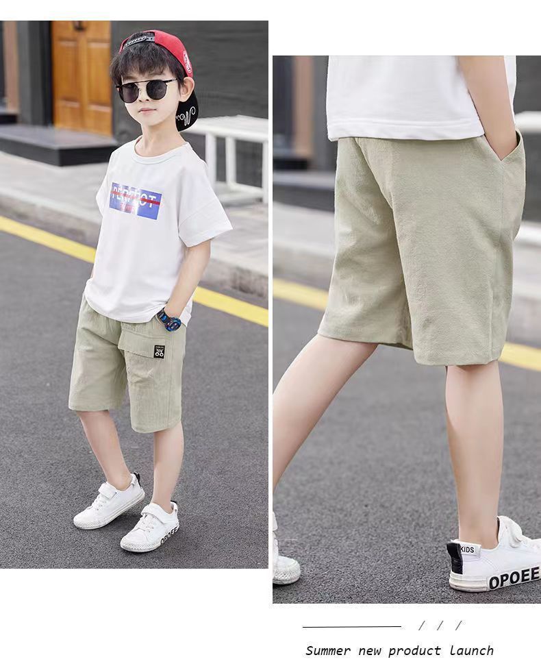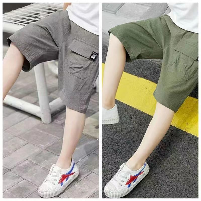 남학생 반바지 여름 얇은 어린이 한국식 5 점 바지 코튼 및 리넨 크레인 바지 초등학생 및 중학교 어린이 유행 서양식
