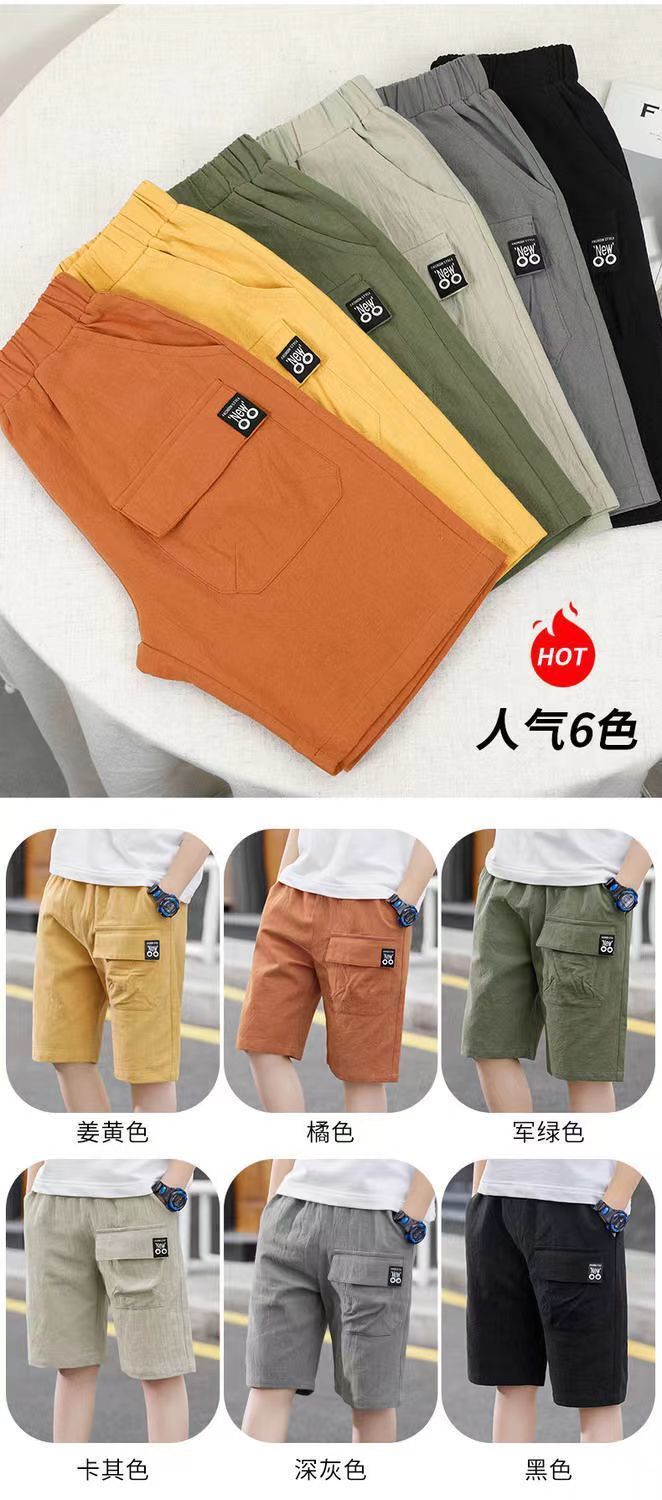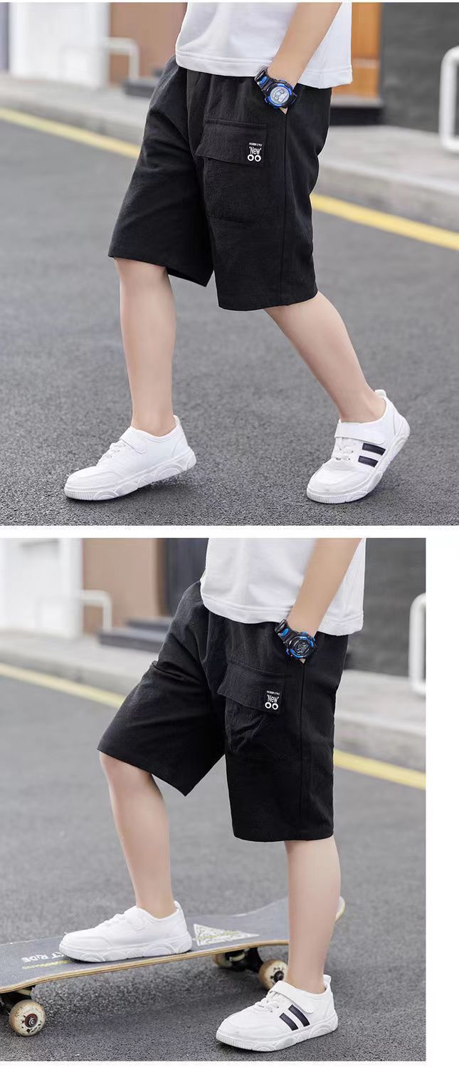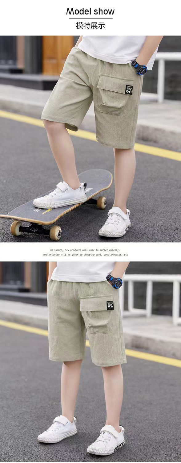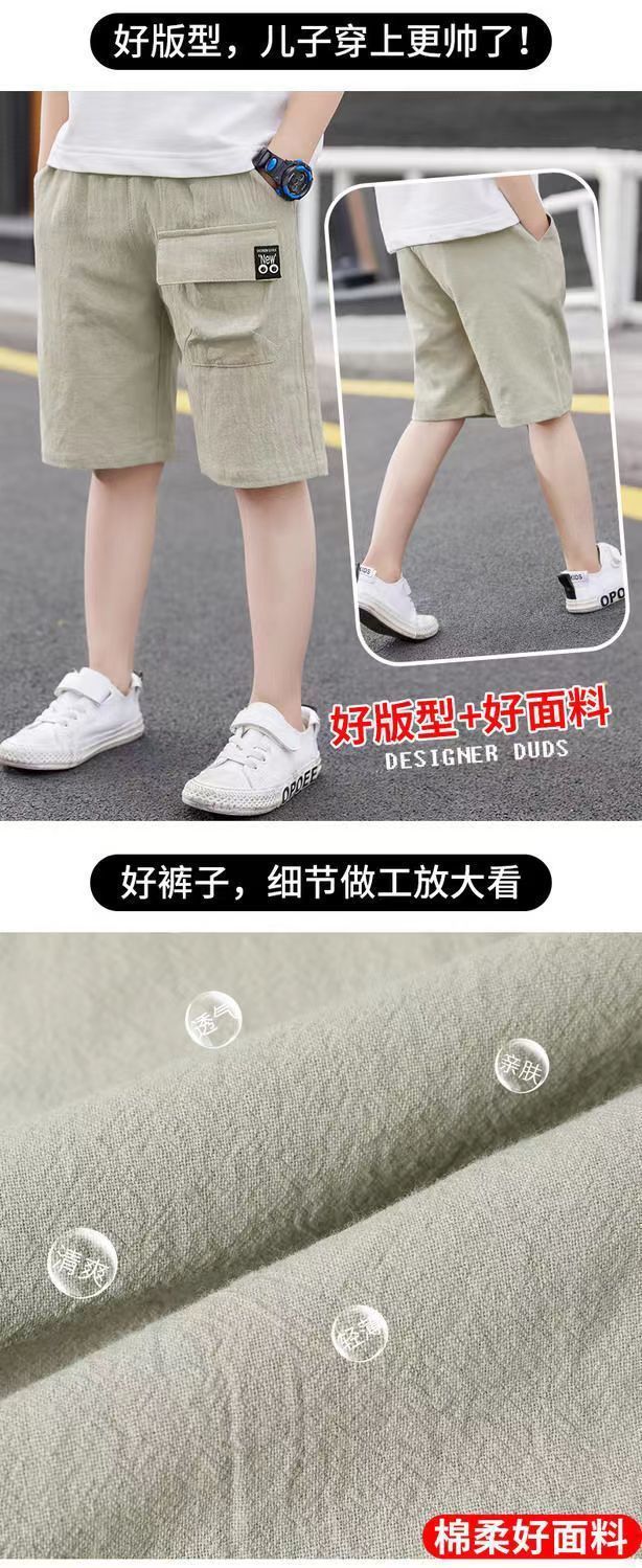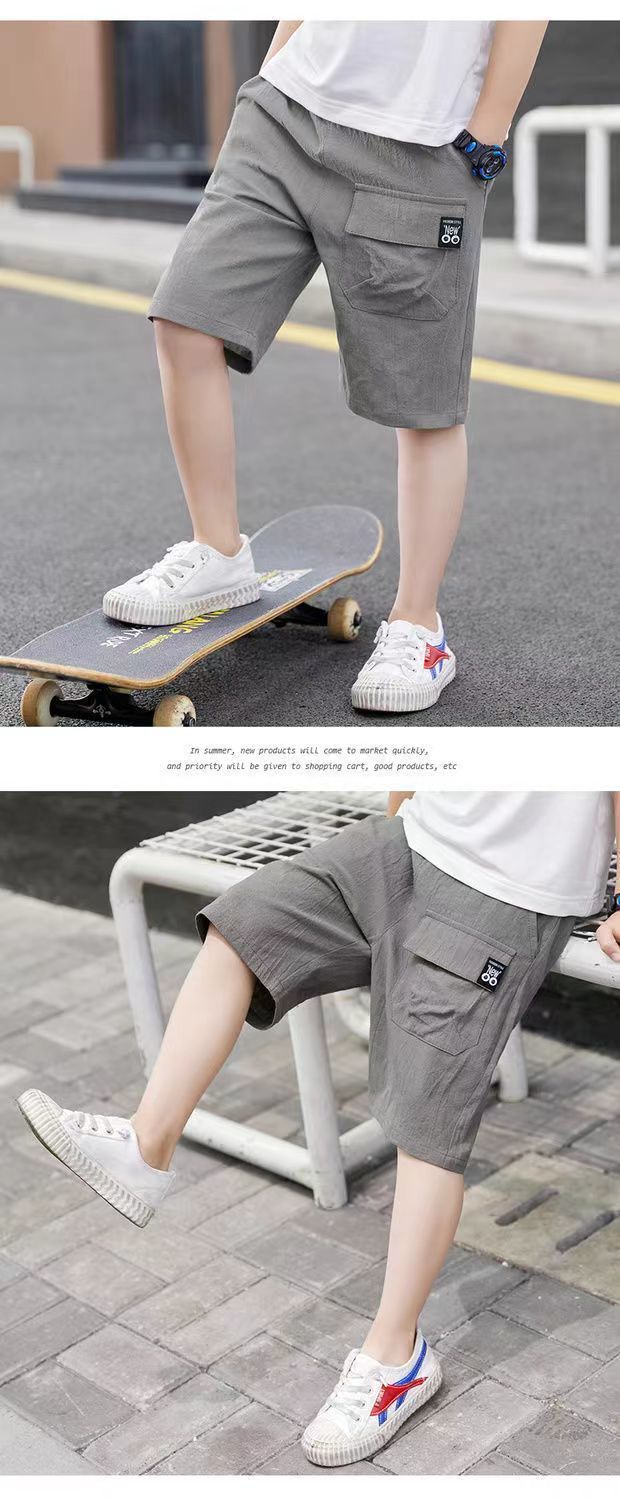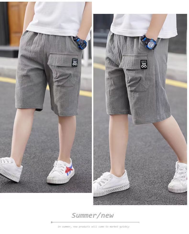 남학생 반바지 여름 얇은 어린이 한국식 5 점 바지 코튼 및 리넨 크레인 바지 초등학생 및 중학교 어린이 유행 서양식스토어 가기