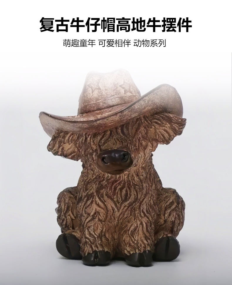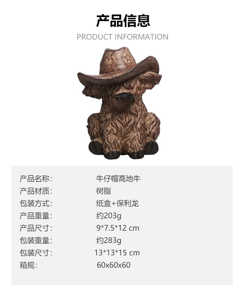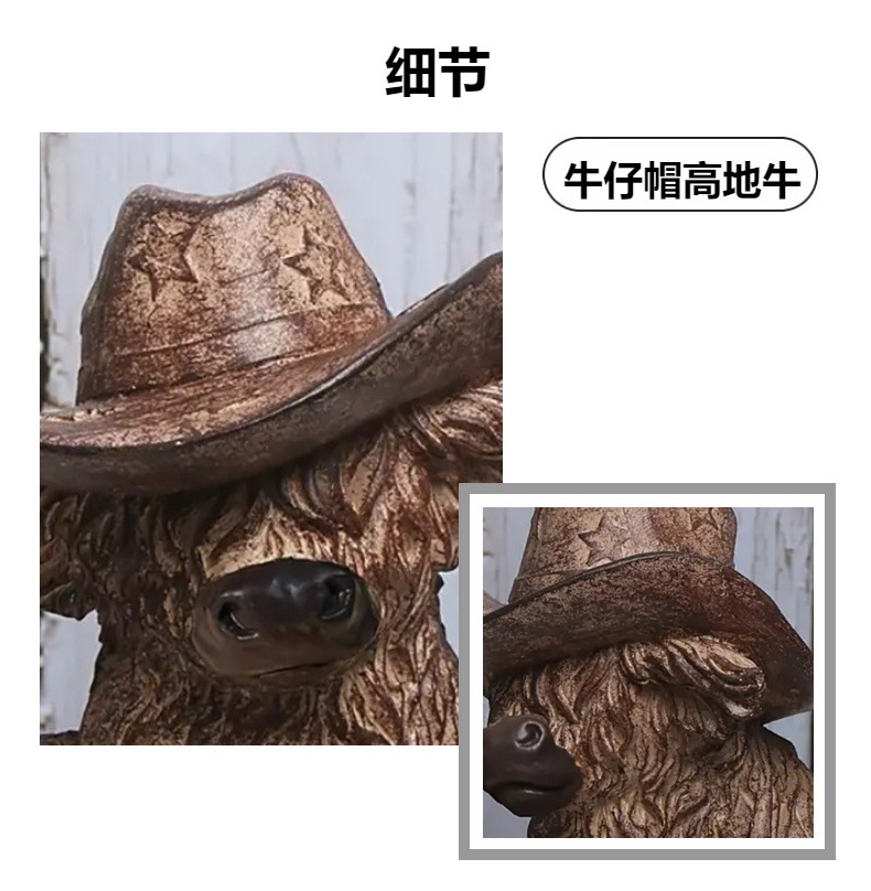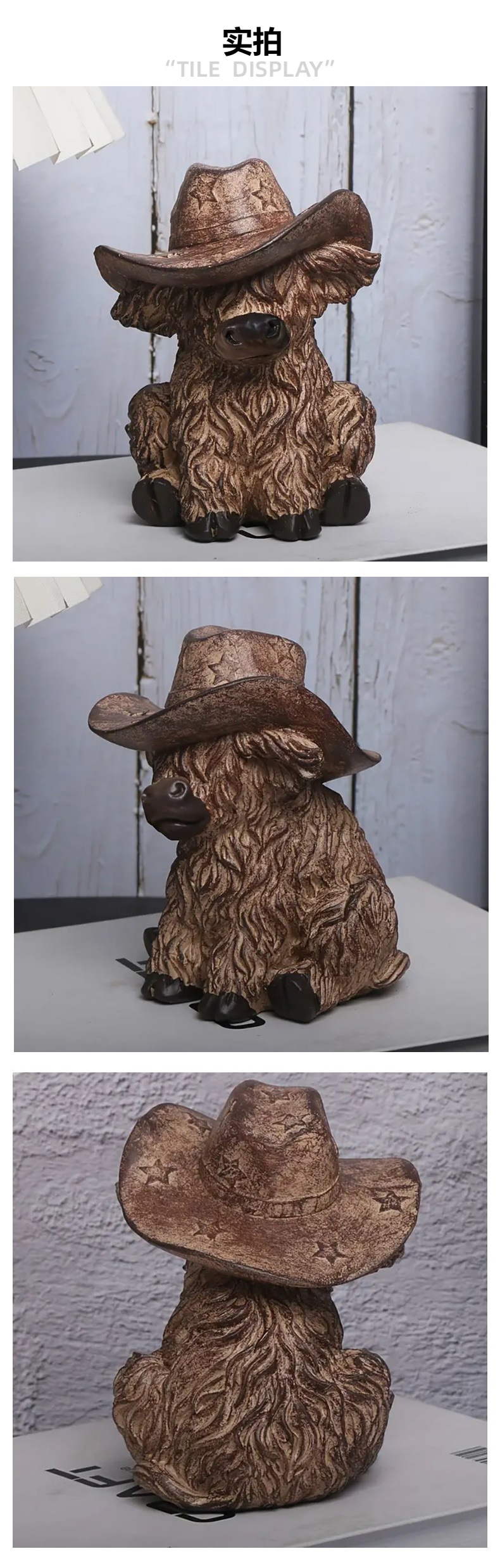 국경 간 새로운 고지 암소 동상 카우보이 모자 국가 수지 농가 장식 안뜰 정원 테이블 장식스토어 가기