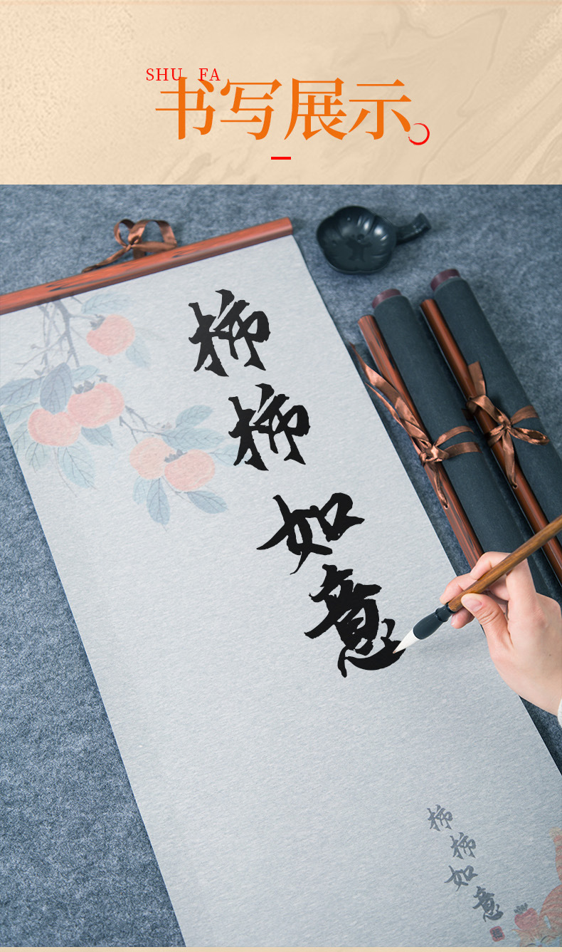 감 Ruyi 브러시 물 쓰기 헝겊 스크롤 133.33cm 오픈 학생 브러시 세트 서예 작업 연습 물 쓰기 천스토어 가기