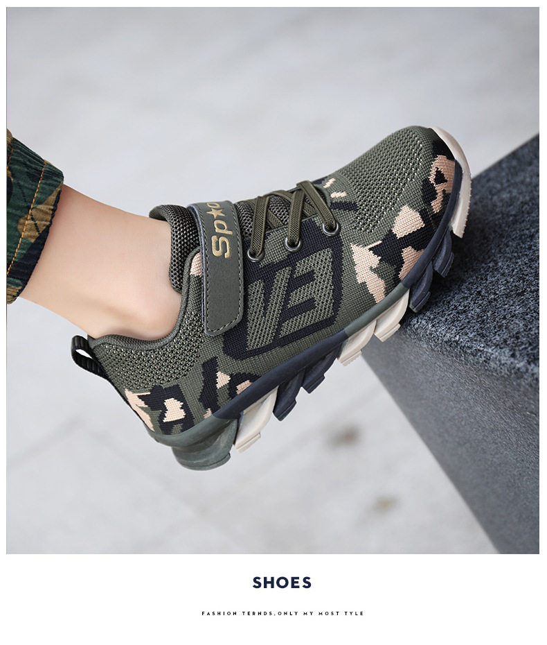 2025 봄과 가을 위장 어린이 신발 남성 여성 어린이 스포츠 신발 도매 대형 학생 훈련 신발 통기성