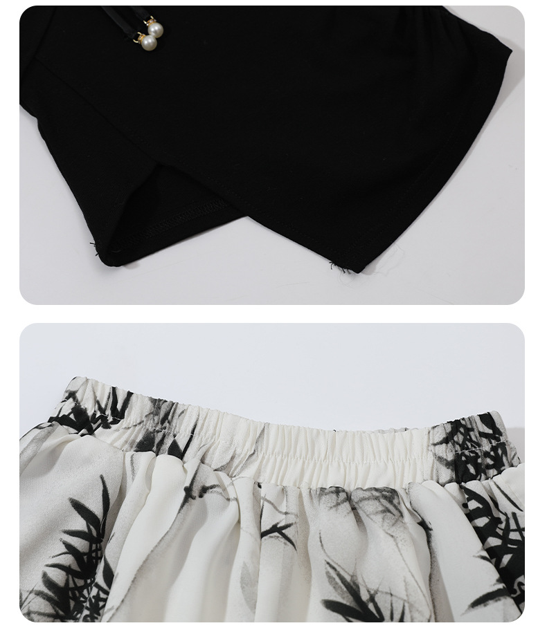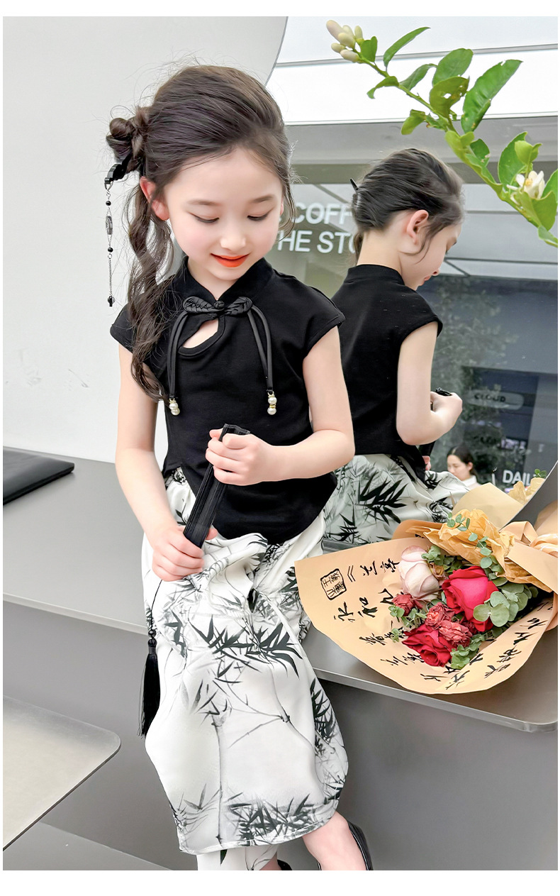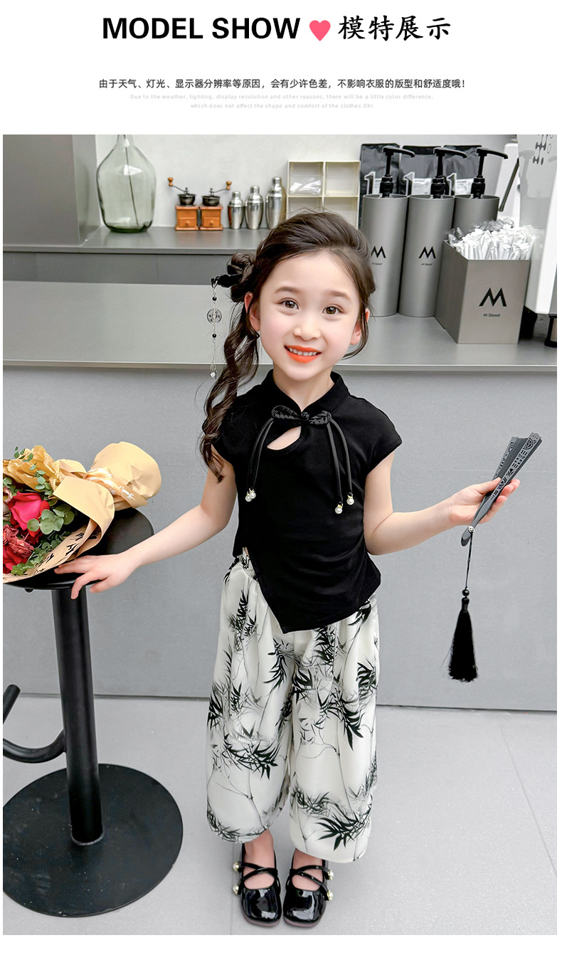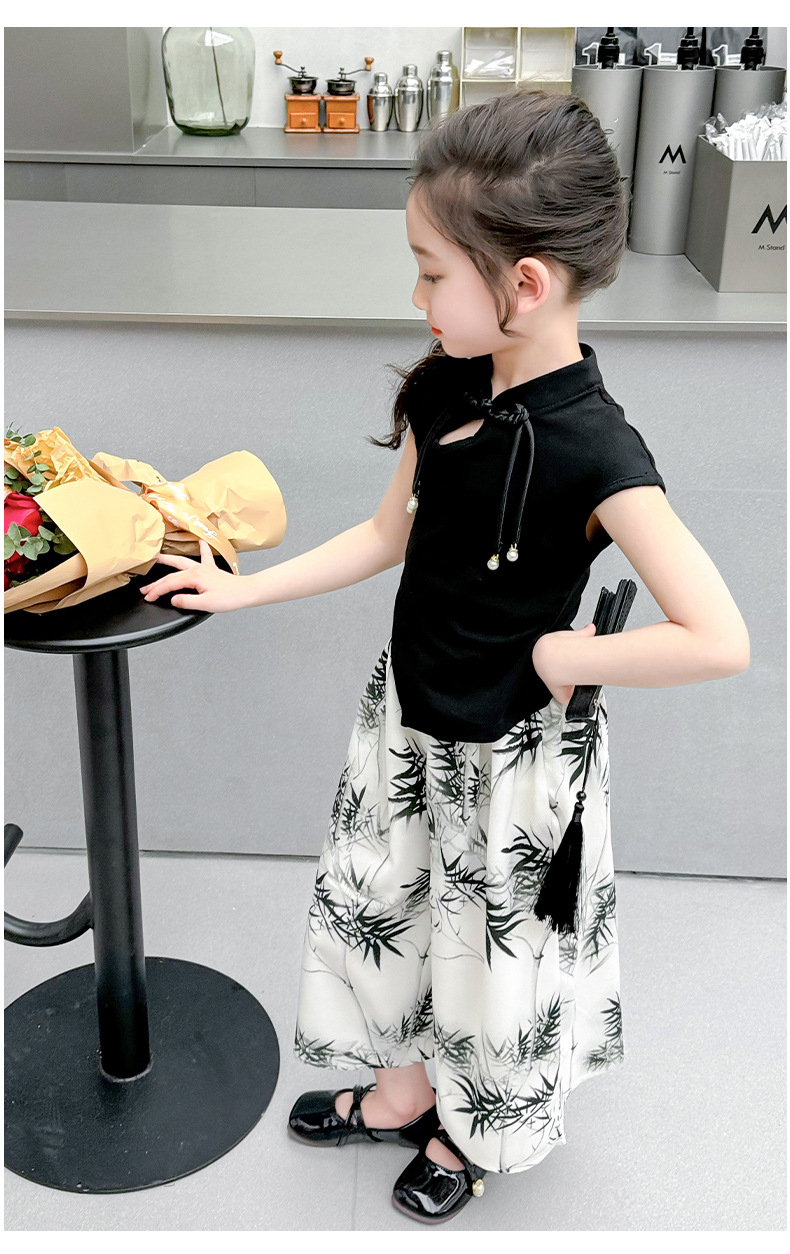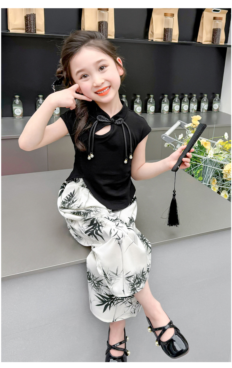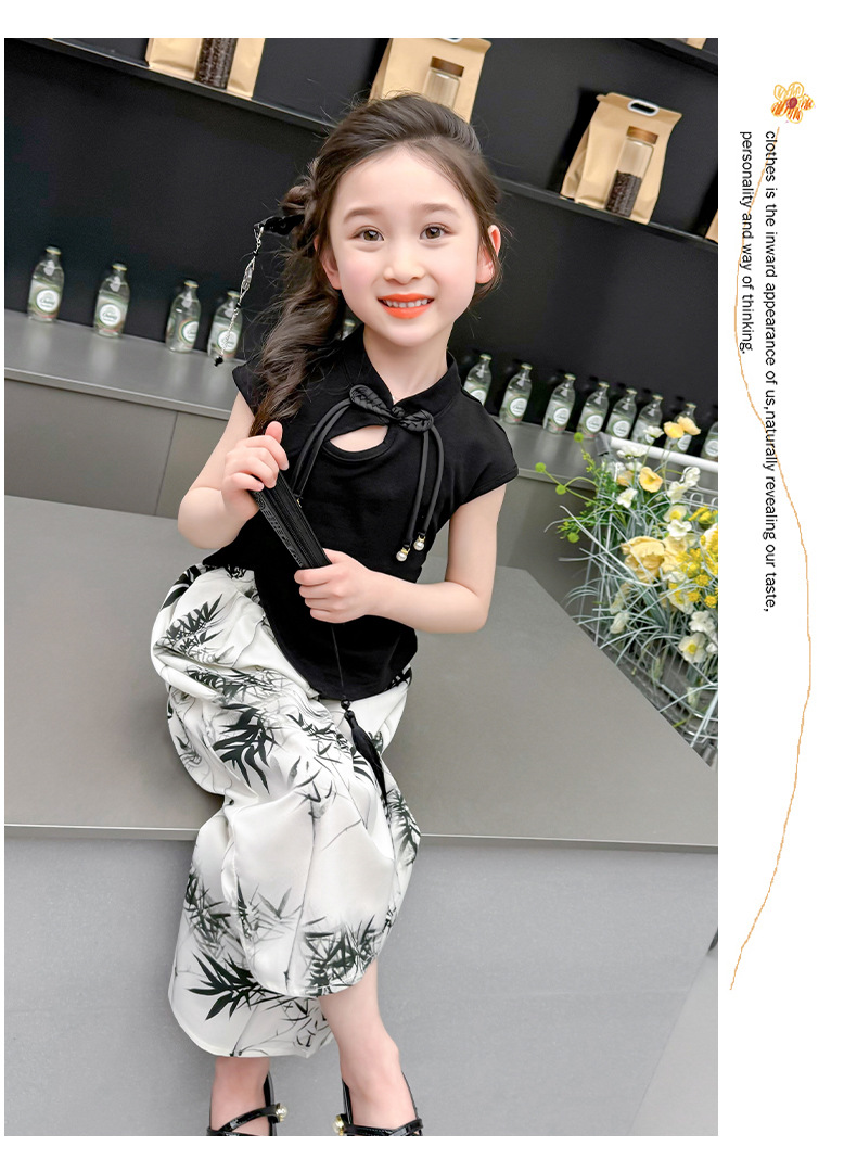 아기 소녀 여름 새로운 중국 스타일 정장 패션 서양식 중국 스타일 짧은 소매 느슨한 넓은 다리 바지 소녀스토어 가기