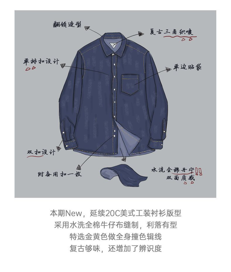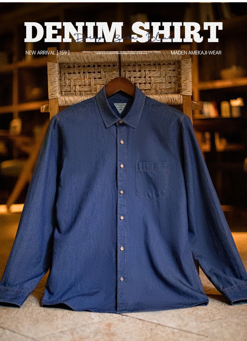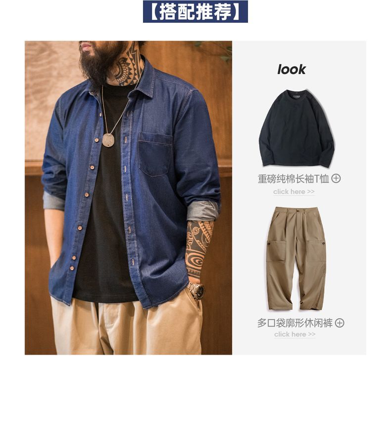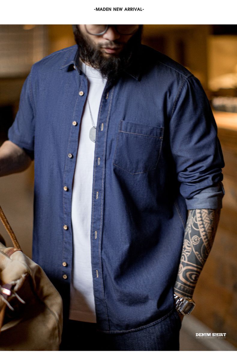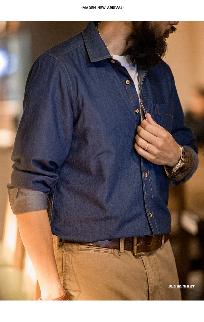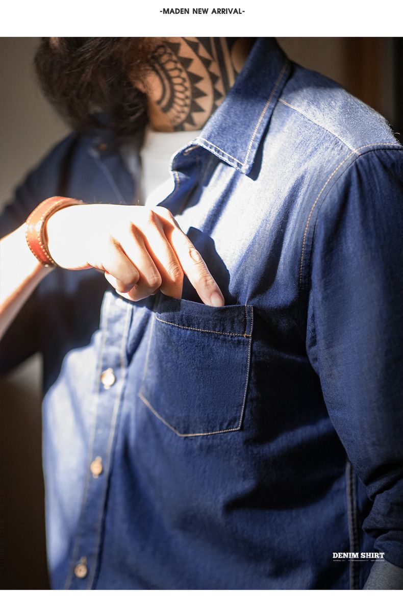 매든 툴링 아메리칸 스타일 레트로 싱글 포켓 툴링 데님 셔츠 타닌 캐주얼 긴 소매 슬림 핏 셔츠 남성용 봄스토어 가기