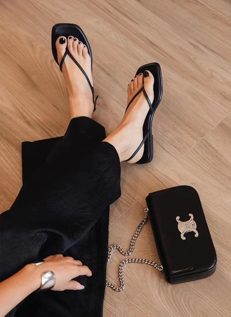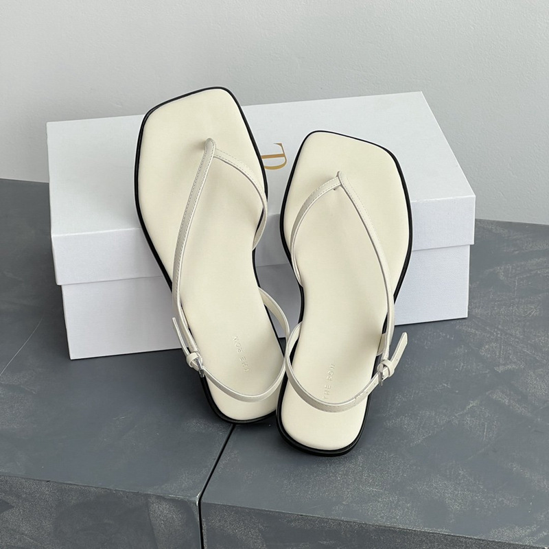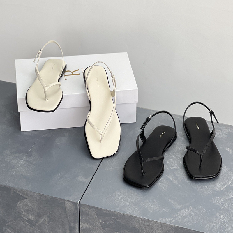 광저우산! the row 미니멀리스트 여성 샌들 오픈 토 플립 플롭 플랫 헤링본 스트랩 달콤한 여성스러운 스타일