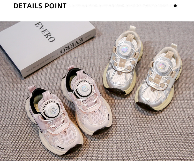 2025 봄 실버 두꺼운 밑창 기능성 스타일 아빠 신발 소녀 경량 스포츠 신발 어린이 캐주얼 운동화