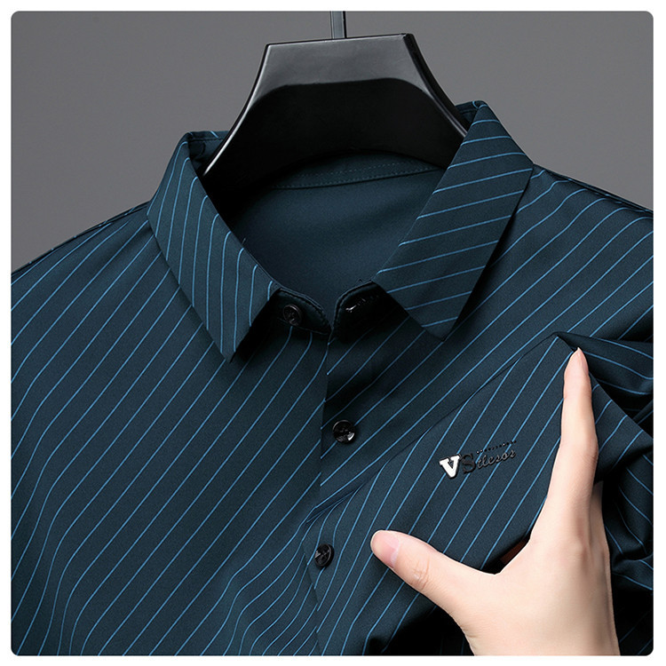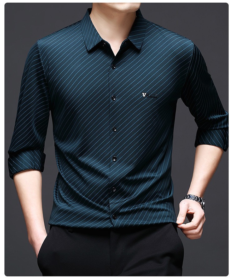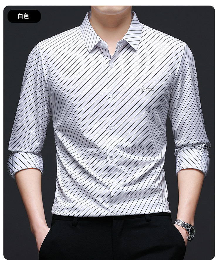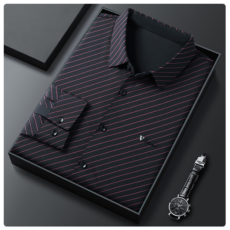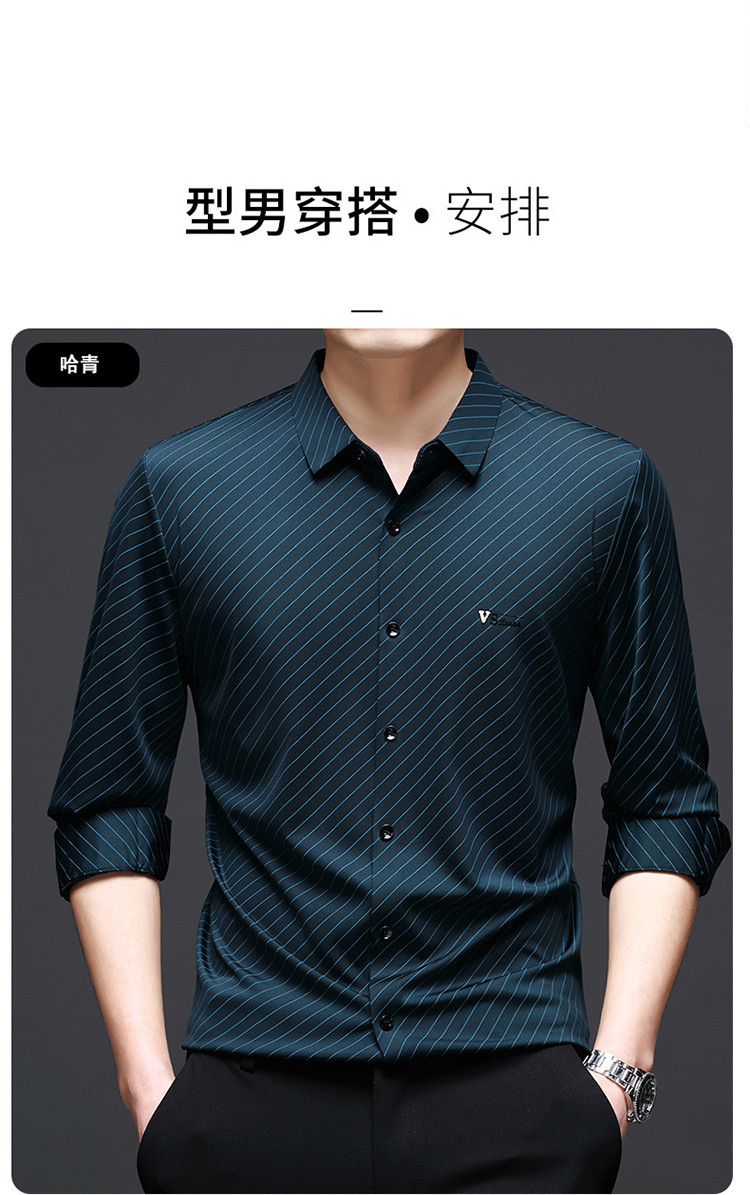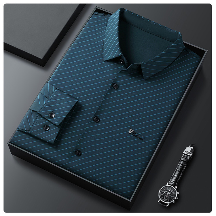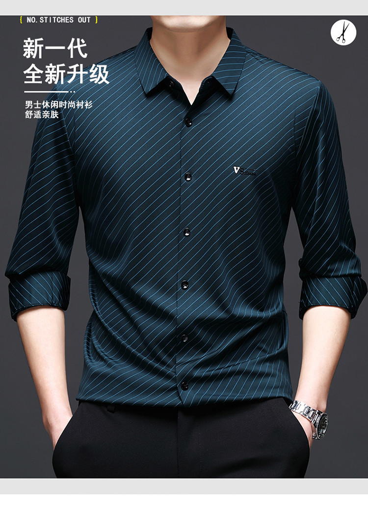 고급 남성용 셔츠 남성용 도움말 비스듬한 스트라이프 프린트 원활한 셔츠 남성용 2025 년 봄 뉴 남성용스토어 가기