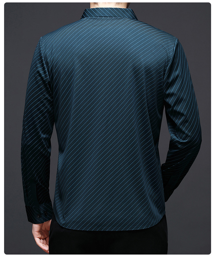 고급 남성용 셔츠 남성용 도움말 비스듬한 스트라이프 프린트 원활한 셔츠 남성용 2025 년 봄 뉴 남성용