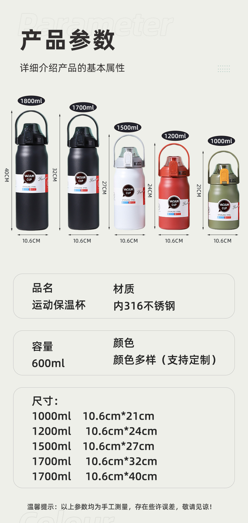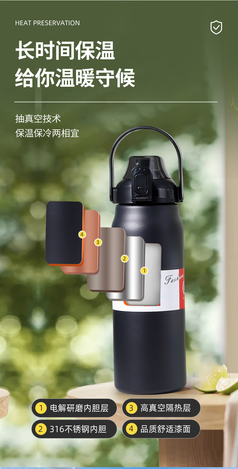 고급스러운 316 스테인리스 보온병, 야외 휴대용 스포츠 물병, 대용량 진공 절연 휴대용 물병스토어 가기