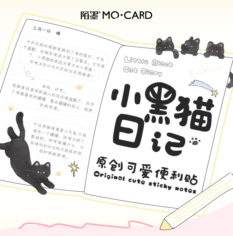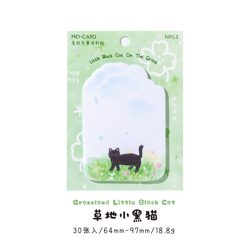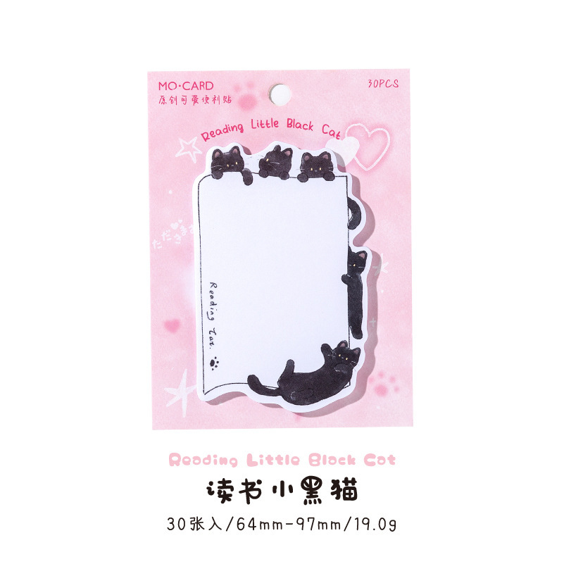 Mo 잉크 포스트잇 노트 작은 검은 고양이 일기 시리즈 귀여운 손으로 그린 그림 학생 사무실 벽 메시지 메모장스토어 가기