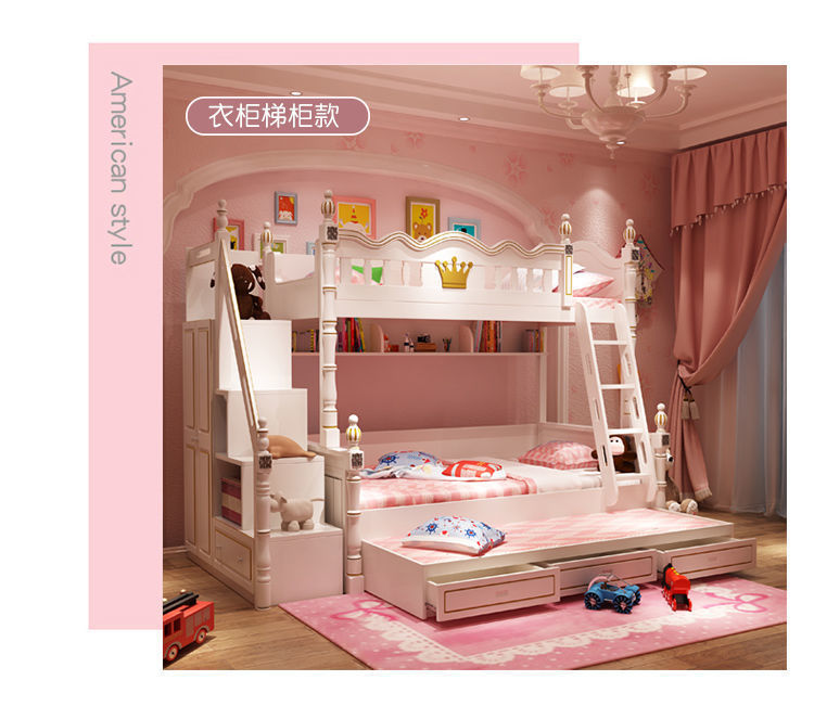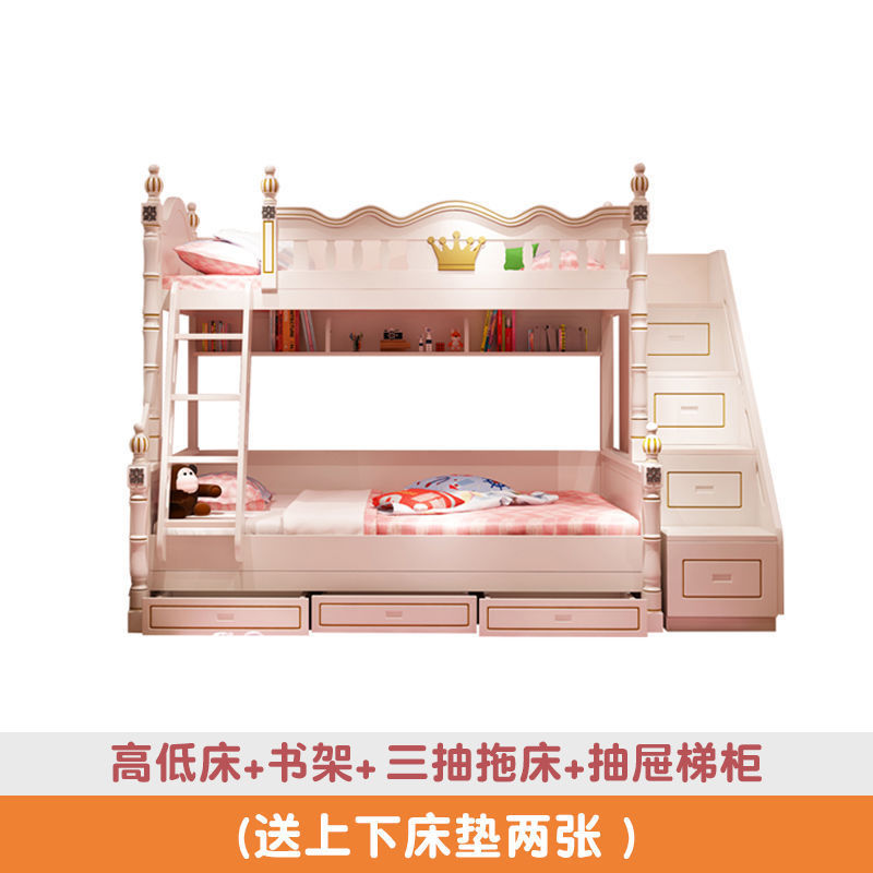 어린이 침대 이층 침대 2 층 침대 소녀의 공주 침대 높고 낮은 침대 소년의 침대 나무 침대 엄마와 아이 더블 침대