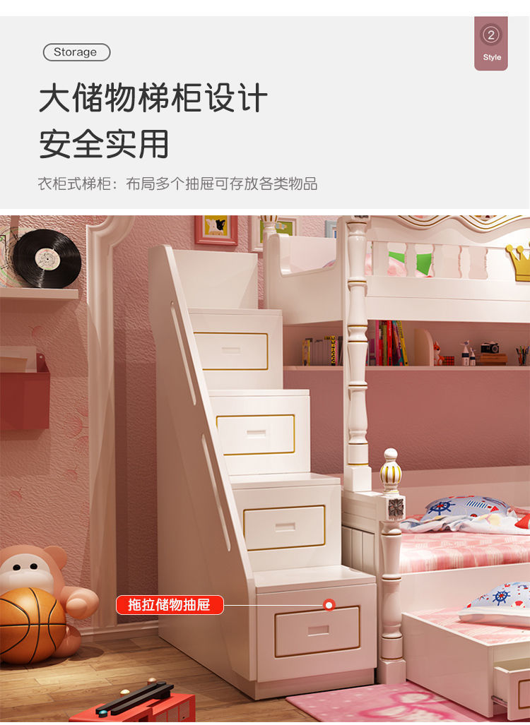 • 이층 침대 + 3단 서랍형 침대 + 서랍형 사다리 캐비닛 + 슬라이드
