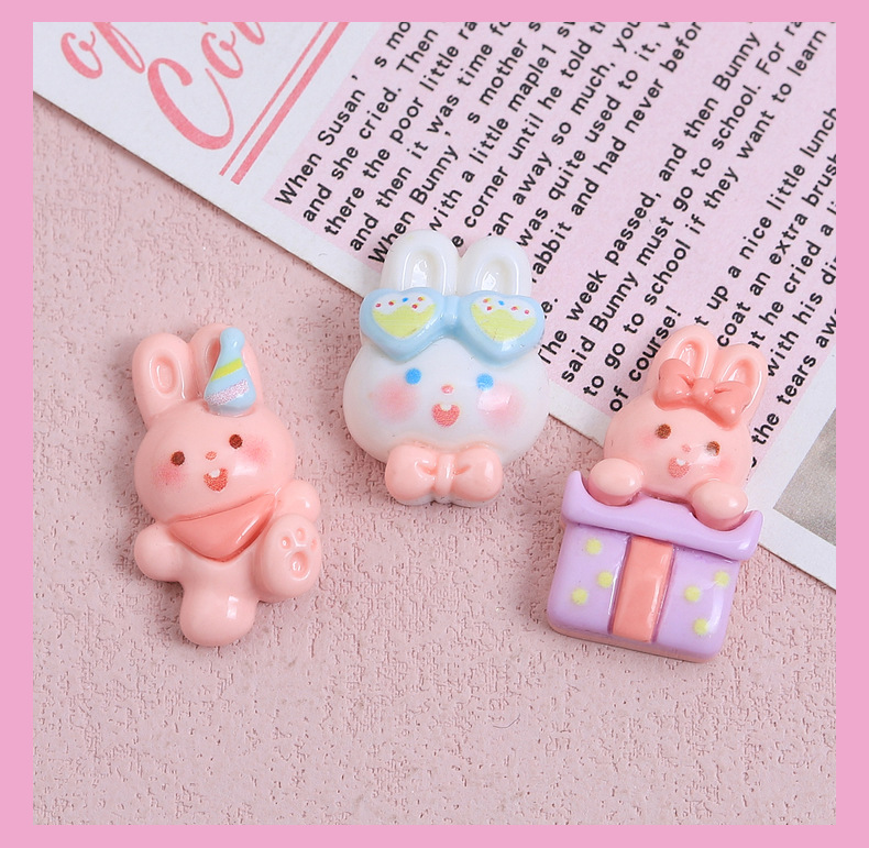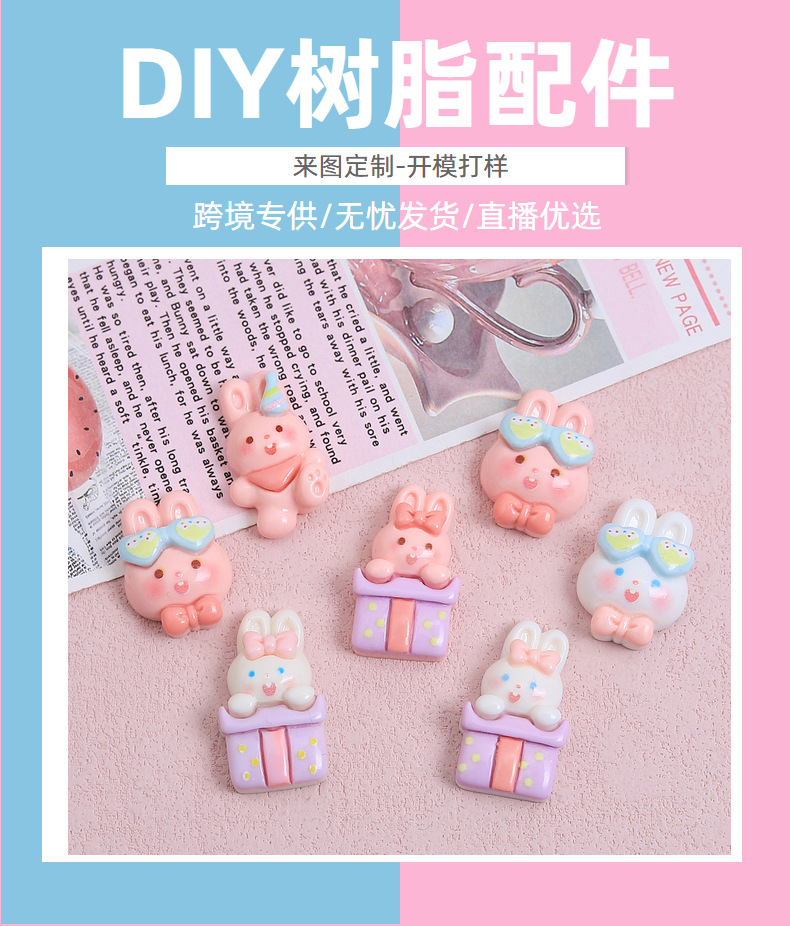 귀여운 토끼 선물 상자 만화 수제 diy 크림 접착제 수지 작은 액세서리 구멍 신발 버클 쥬얼리 재료 패키지스토어 가기