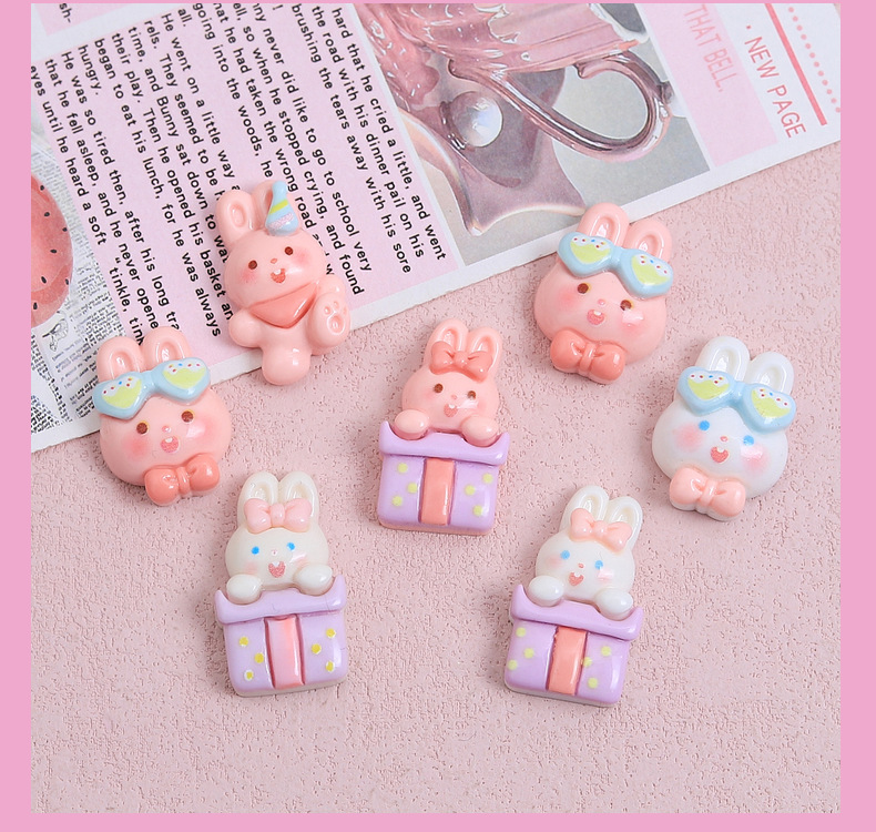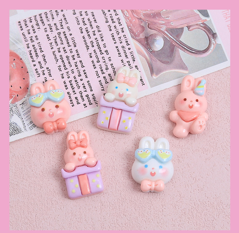 귀여운 토끼 선물 상자 만화 수제 diy 크림 접착제 수지 작은 액세서리 구멍 신발 버클 쥬얼리 재료 패키지