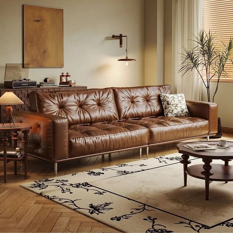북유럽 이탈리아 스타일 미니멀리스트 가죽 소파 거실 작은 아파트 하이 엔드 가정용 빛 럭셔리 더블 3 인 스트레이트 행 캐주얼 소파스토어 가기
