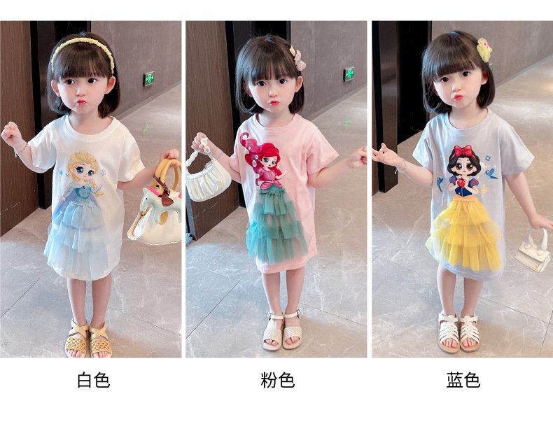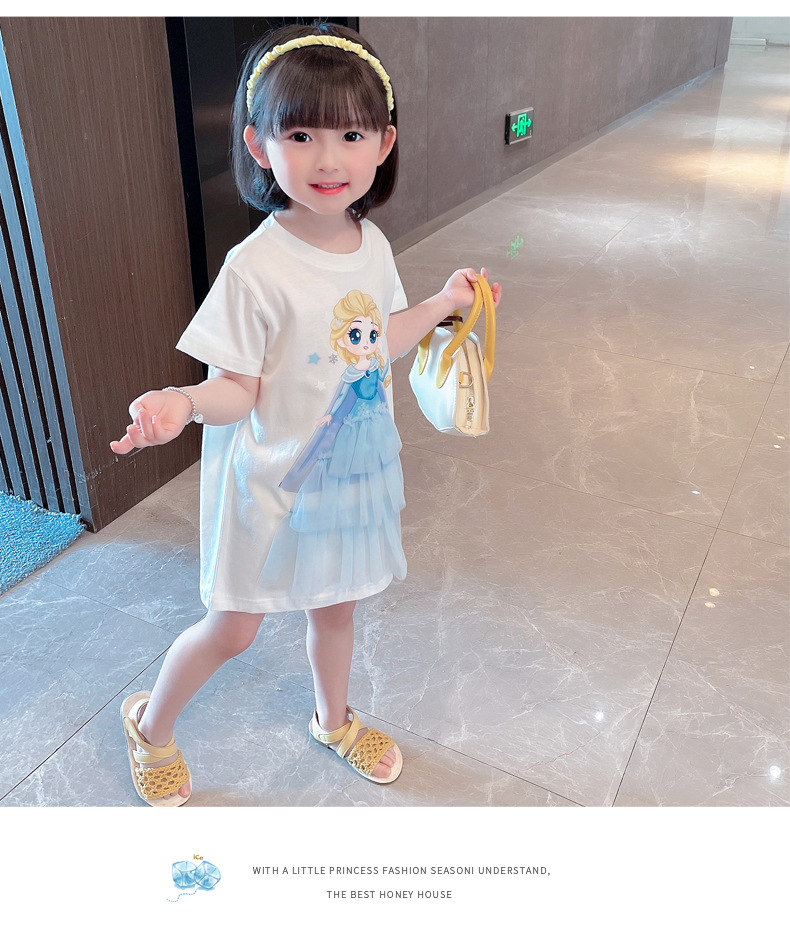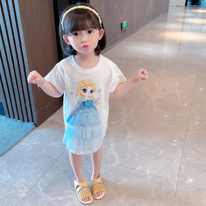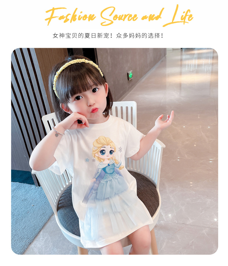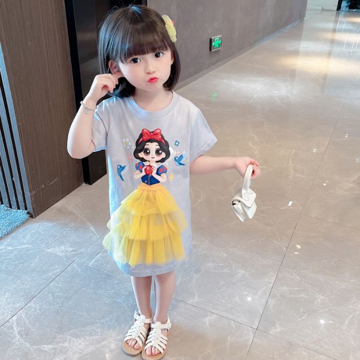 아기 소녀 여름 새로운 어린이 원피스 귀여운 만화 패션 서양식 티셔츠 원피스 퍼프 소매스토어 가기