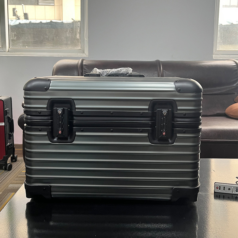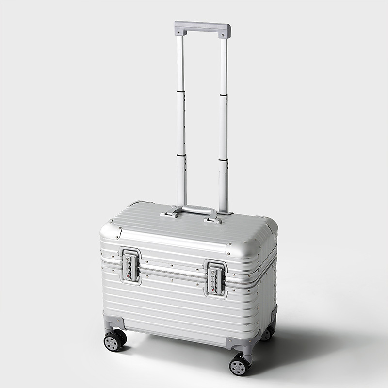 독일 모든 알루미늄 마그네슘 합금 국경 선장 상자 보편적 인 휠 충격 방지 암호 상자 18 인치 탑승 상자 사진 미니 상자스토어 가기