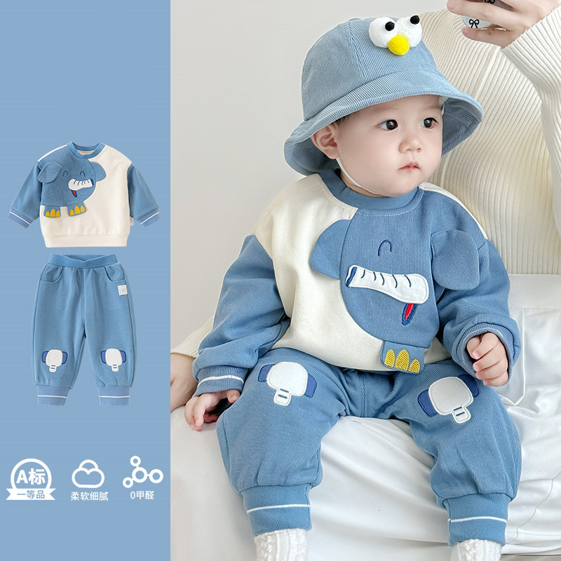 어린이 세트 봄 2025 새로운 소년 소녀 아기 스웨터 바지 봄 아기 옷 분할 투피스 세트스토어 가기