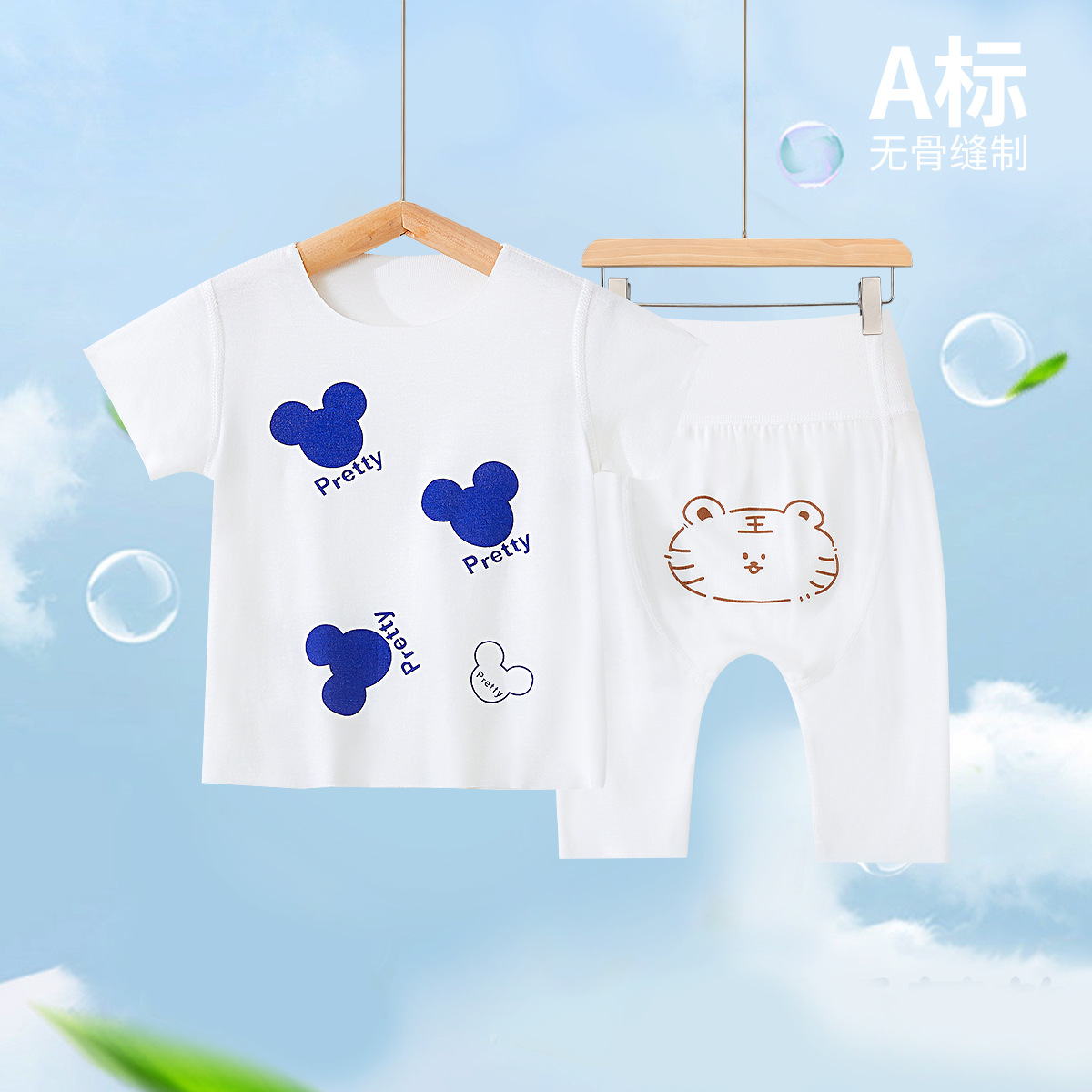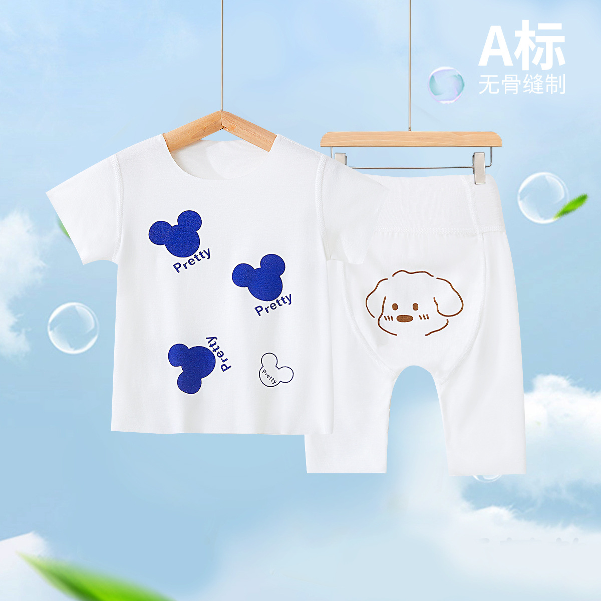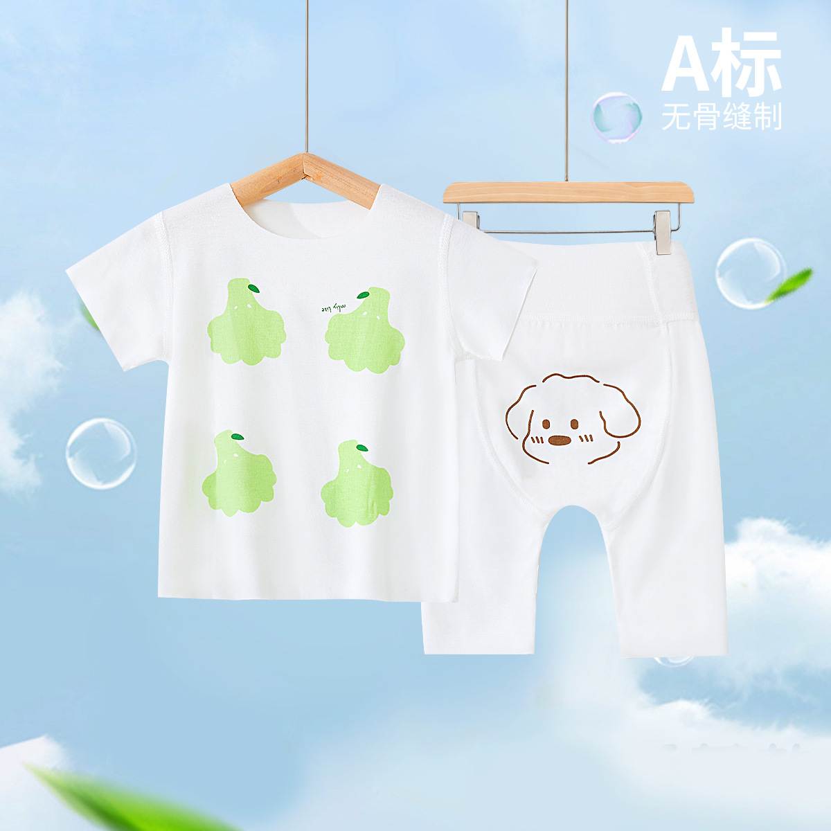 아기 반 소매 잠옷 여름 얇은 분할 아기 소녀 아이스 실크 모달 여름 짧은 소매 세트 여름 옷스토어 가기