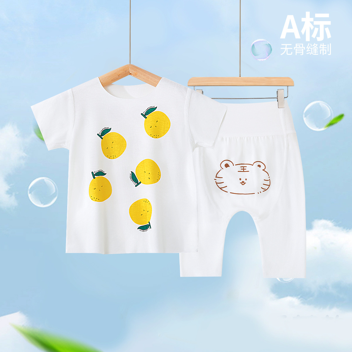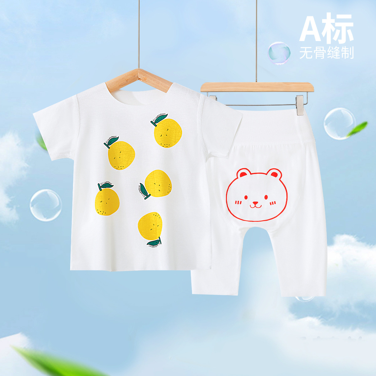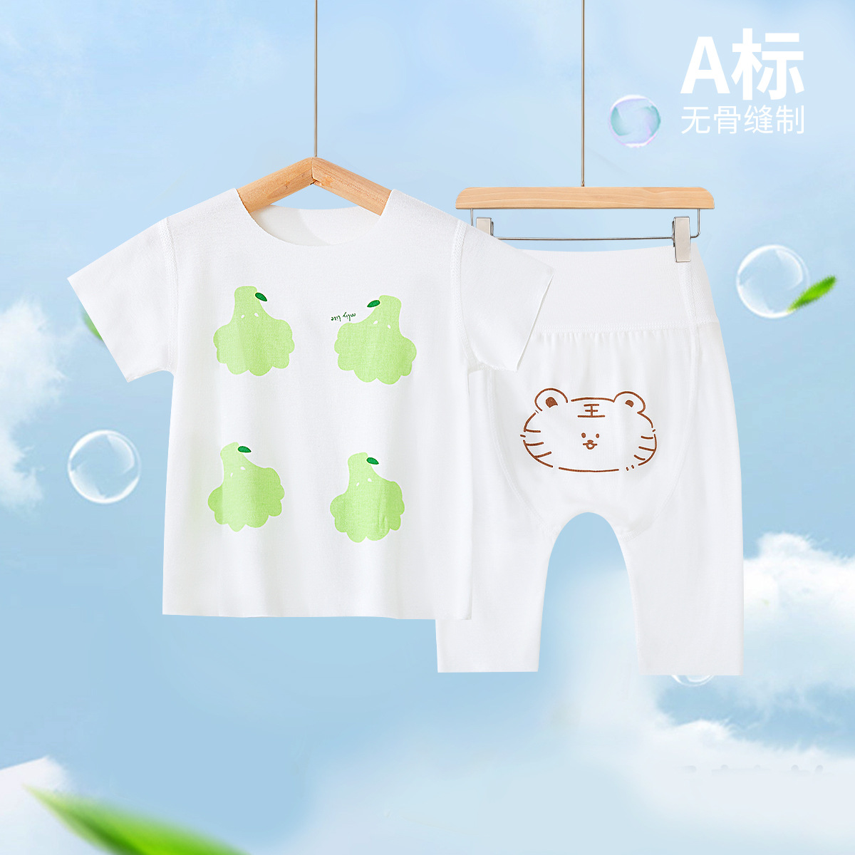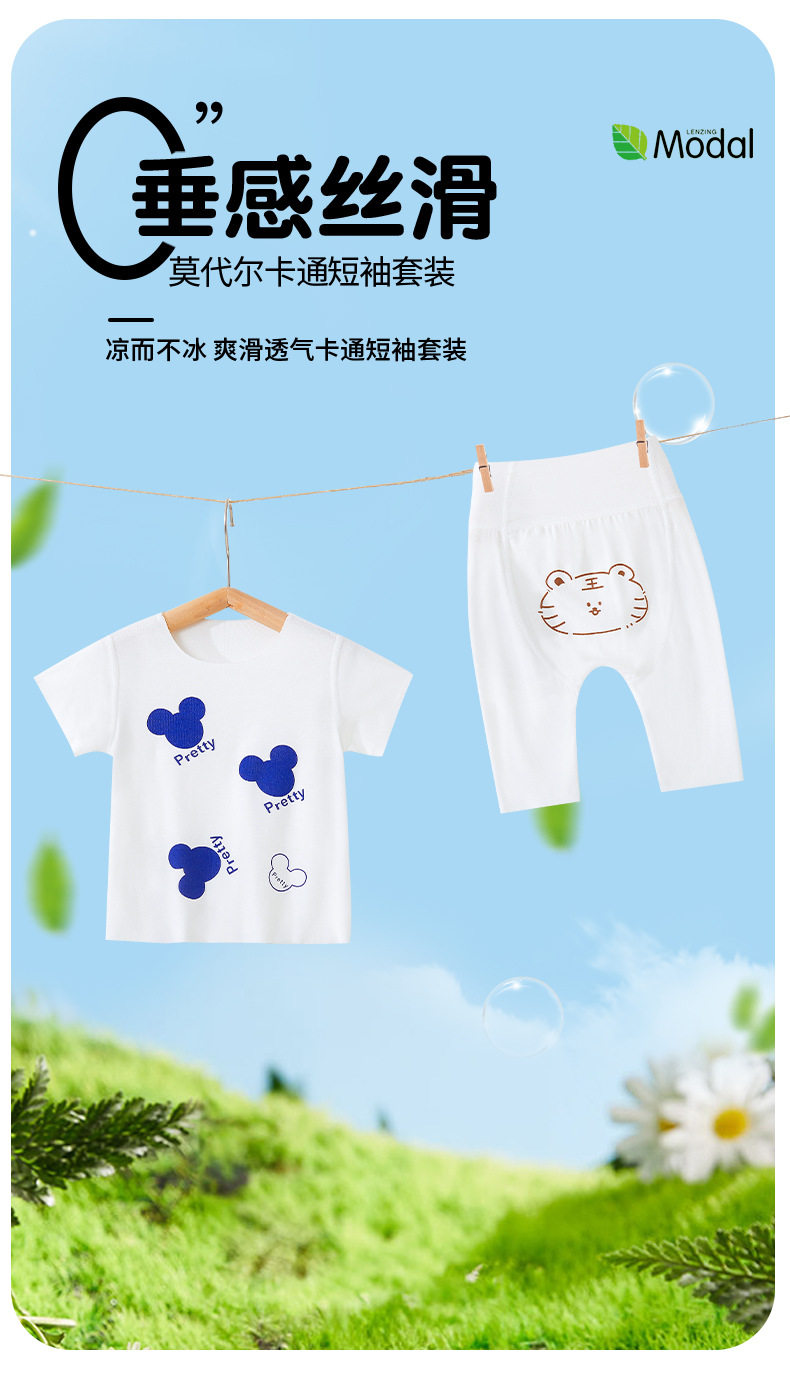 아기 반 소매 잠옷 여름 얇은 분할 아기 소녀 아이스 실크 모달 여름 짧은 소매 세트 여름 옷스토어 가기