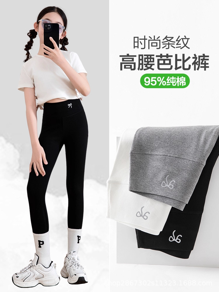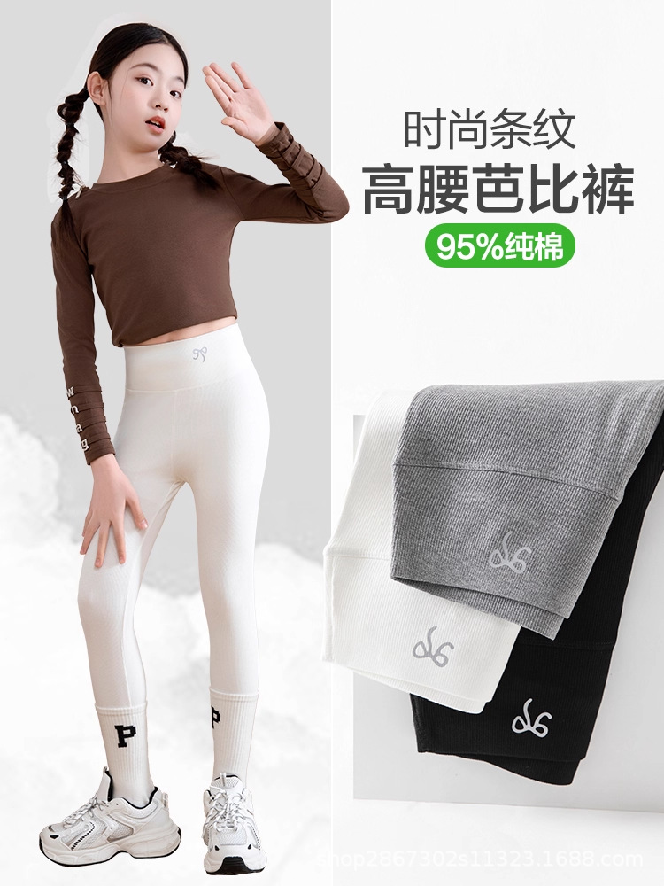 소녀 레깅스 봄과 가을 외부 순수한 면 높은 허리 스트레치 어린이 큰 어린이 바비 바지 요가 스포츠 바지 바지