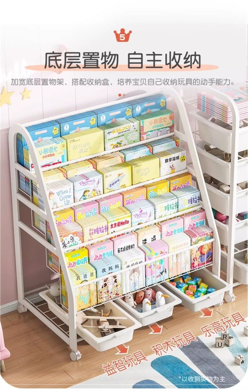 어린이 장난감 보관함 다층 분류 바닥 보관함 아기 간식 책 그림책 보관함 책장