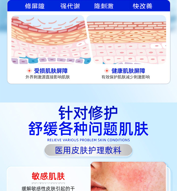 의료 피부 수리 드레싱 페이셜 마스크 액체 제조 업체 피부염 습진 여드름 pockmarks 가려움증 깊은 수리 스프레이스토어 가기