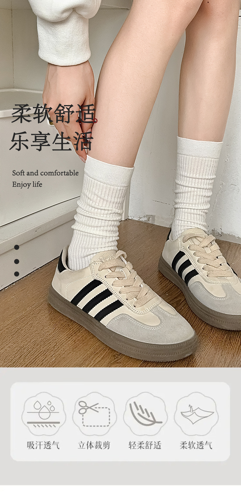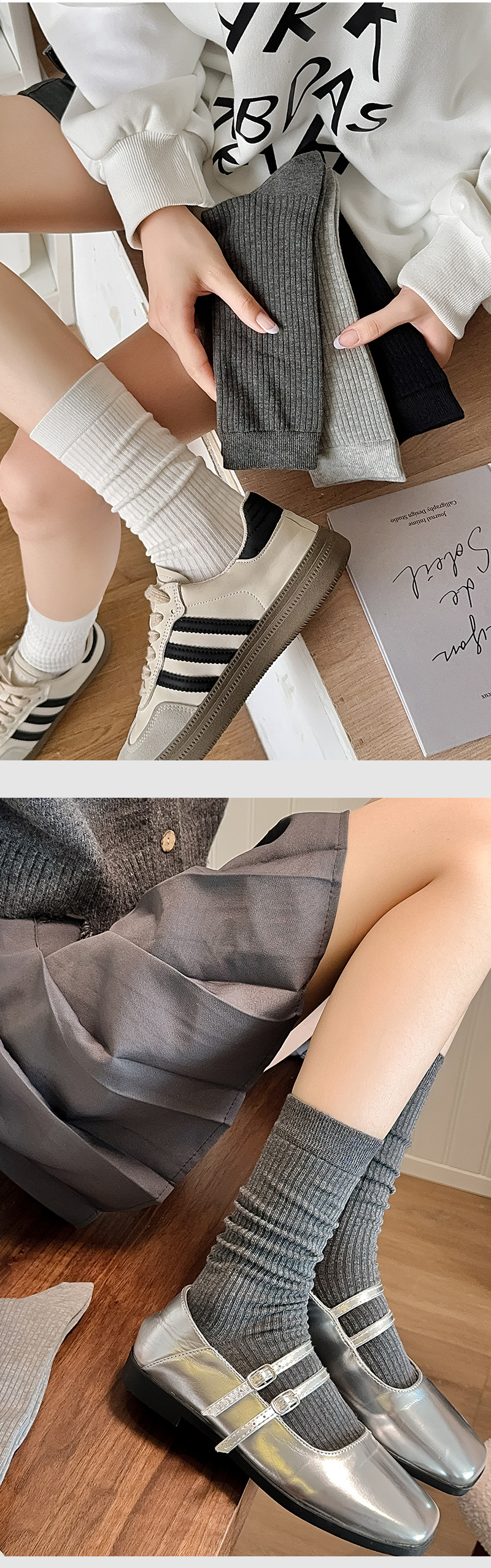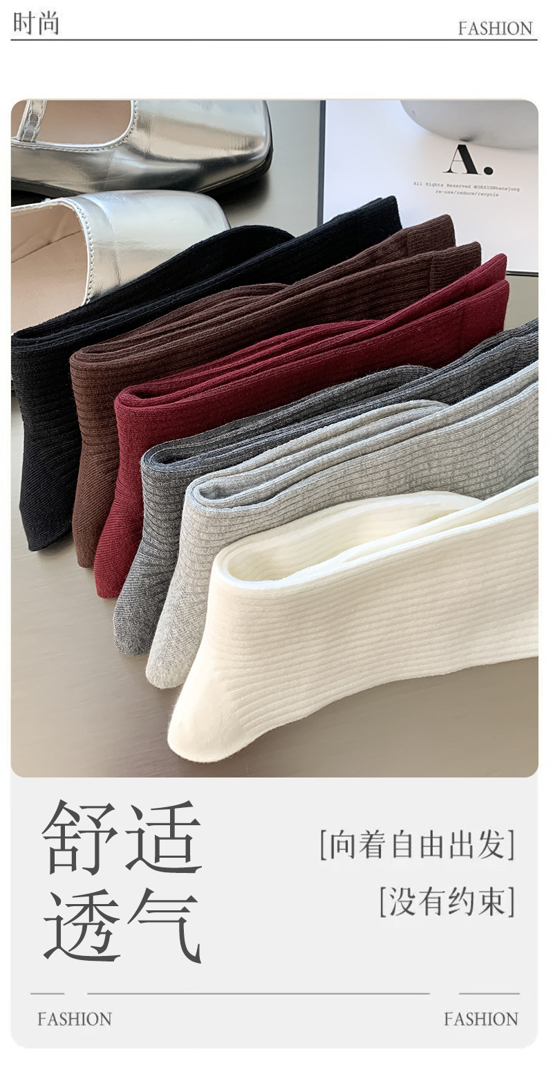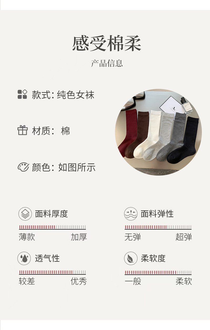여성용 종아리 양말, 단색, 심플하고 통기성이 좋은 여성용 양말, 빗질면 긴 종아리 양말, 주지 양말스토어 가기