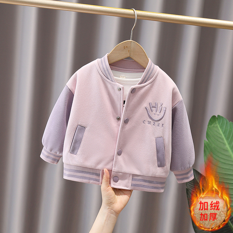 • [두꺼운 후리스] HI 스마일리 페이스 야구 유니폼 [핑크 퍼플]