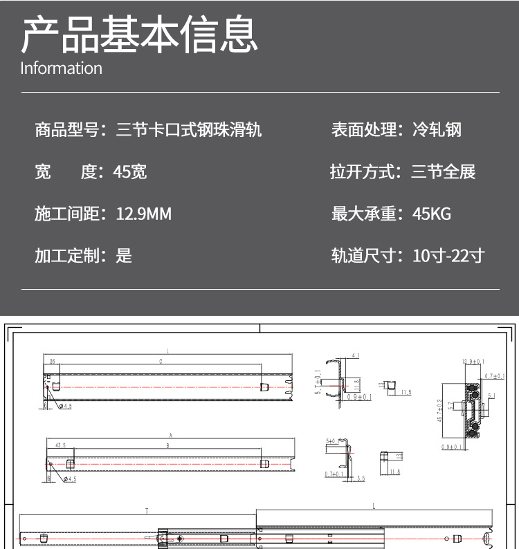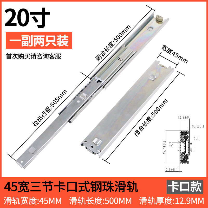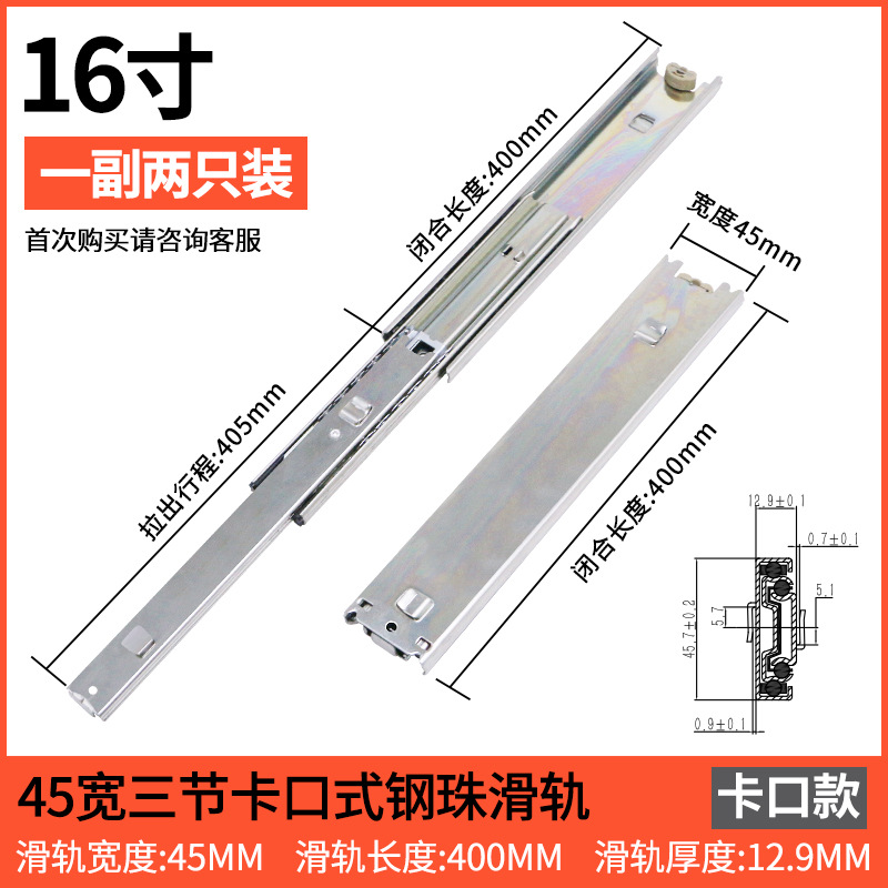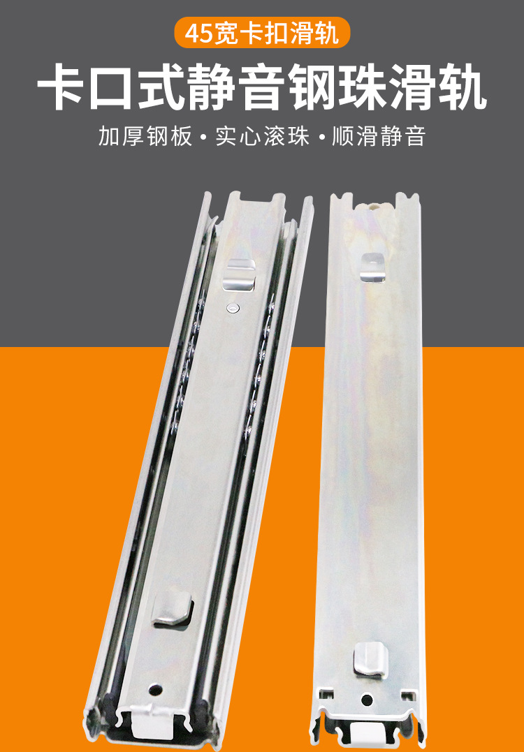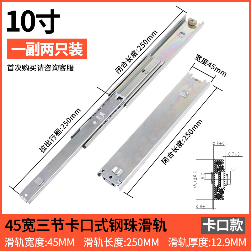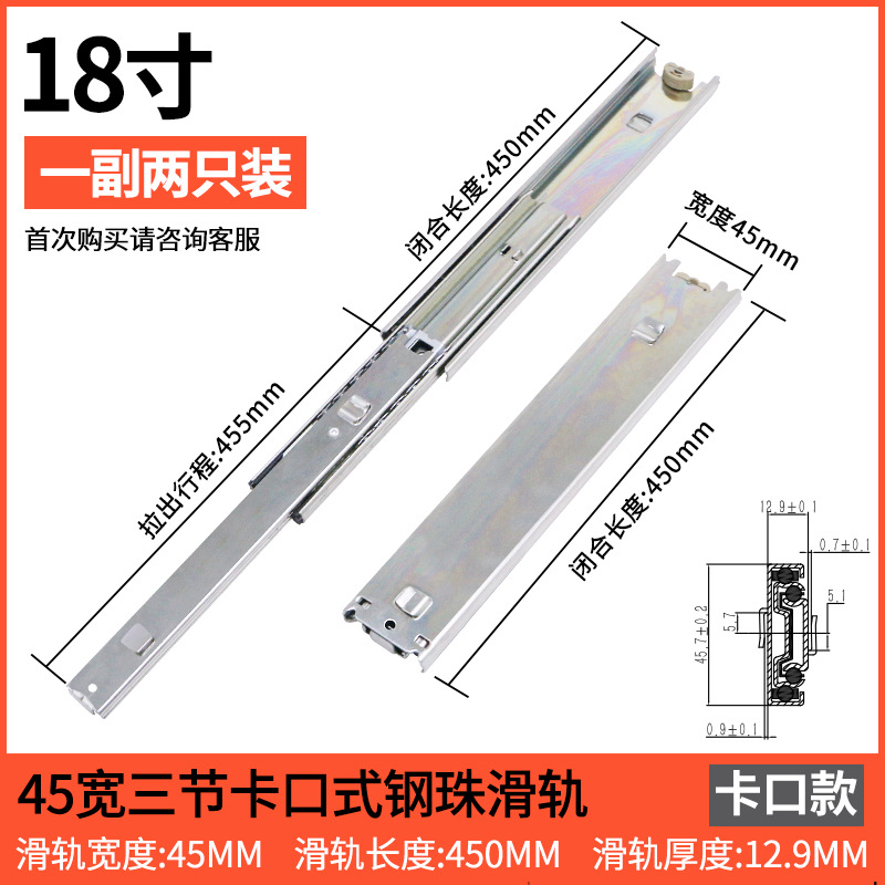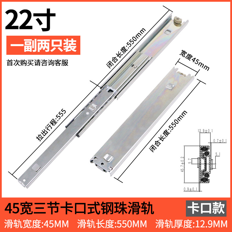 스네어 45 와이드 서랍 슬라이드 레일 총검 레일 두꺼운 냉간 압연 스틸 음소거 3 섹션 푸시 풀 레일 스냅 슬라이드 레일