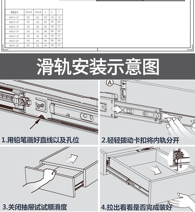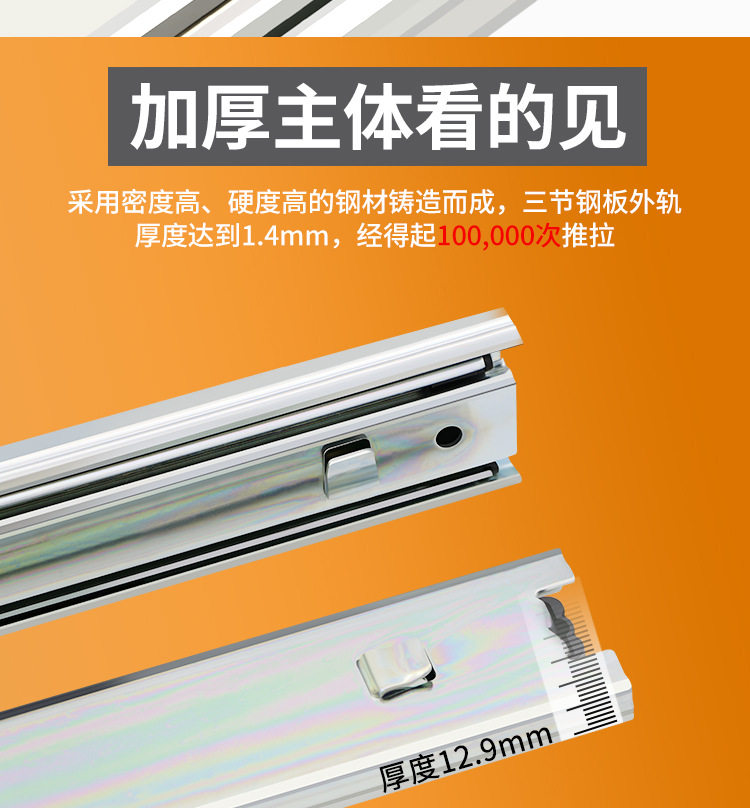 스네어 45 와이드 서랍 슬라이드 레일 총검 레일 두꺼운 냉간 압연 스틸 음소거 3 섹션 푸시 풀 레일 스냅 슬라이드 레일스토어 가기