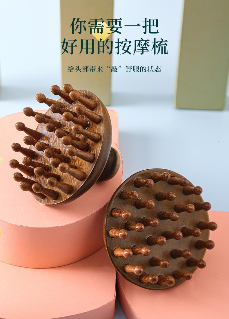 TANMUJIANG 고급 백단 원형 빗 두피 마사지 빗 머리 경락 빗 비뿔 빗 무료 배송