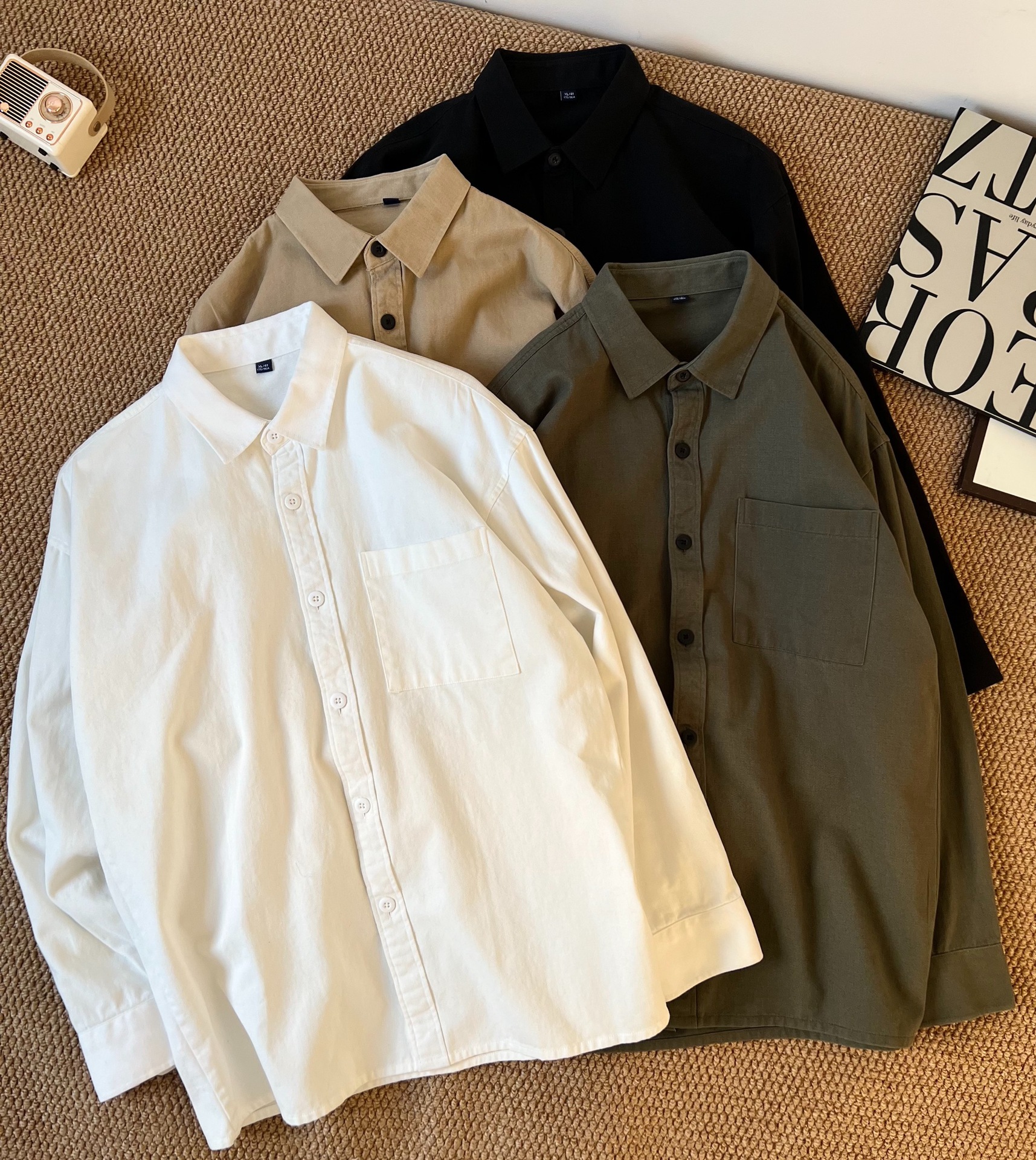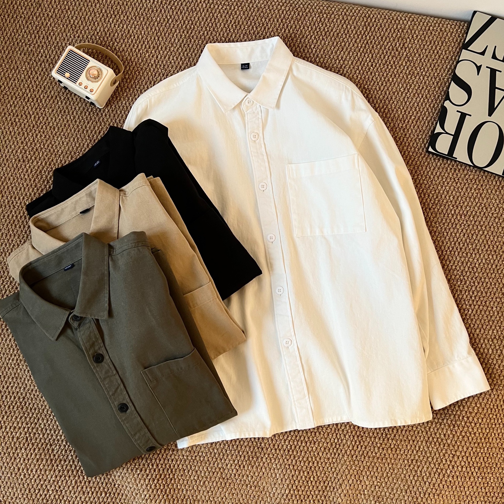 헤비 퓨어 코튼 긴팔 셔츠 남자의 요정 싱글 제품 하이 엔드 느낌 빌어 먹을 몇 가지 세련된 남성용 캐주얼 셔츠