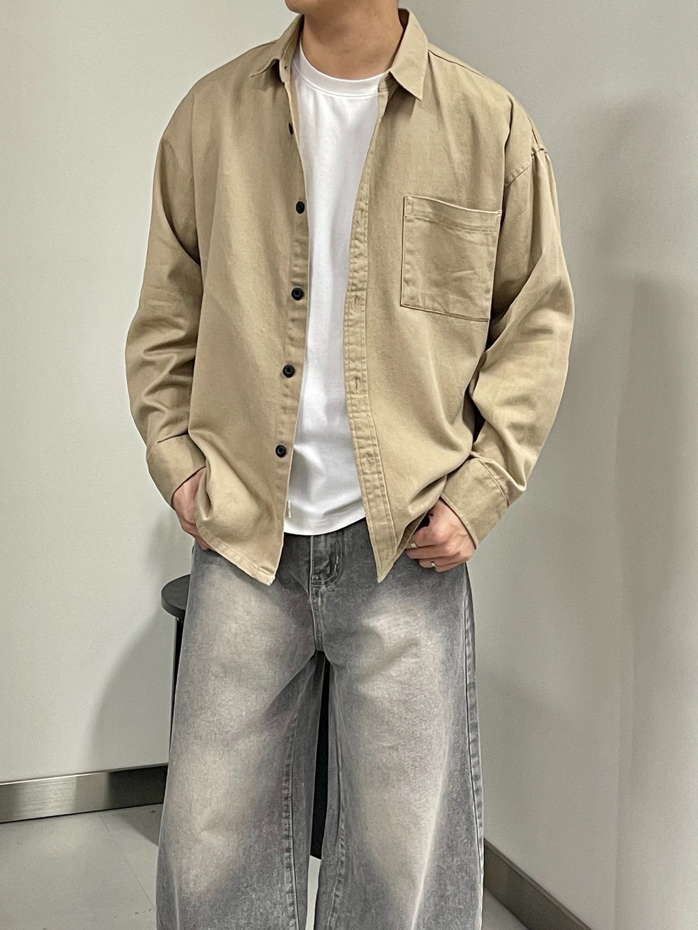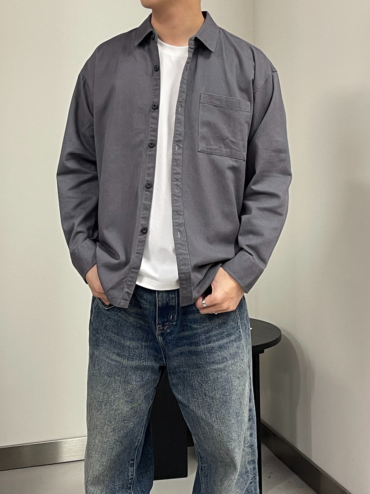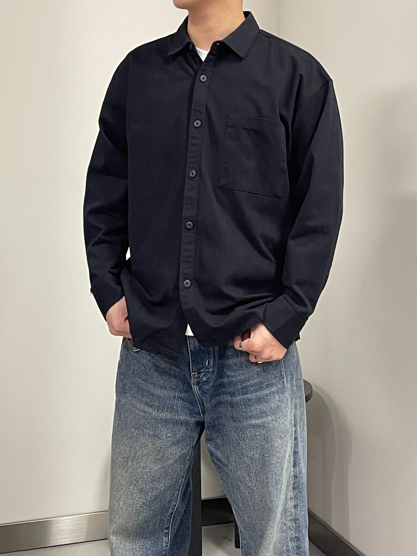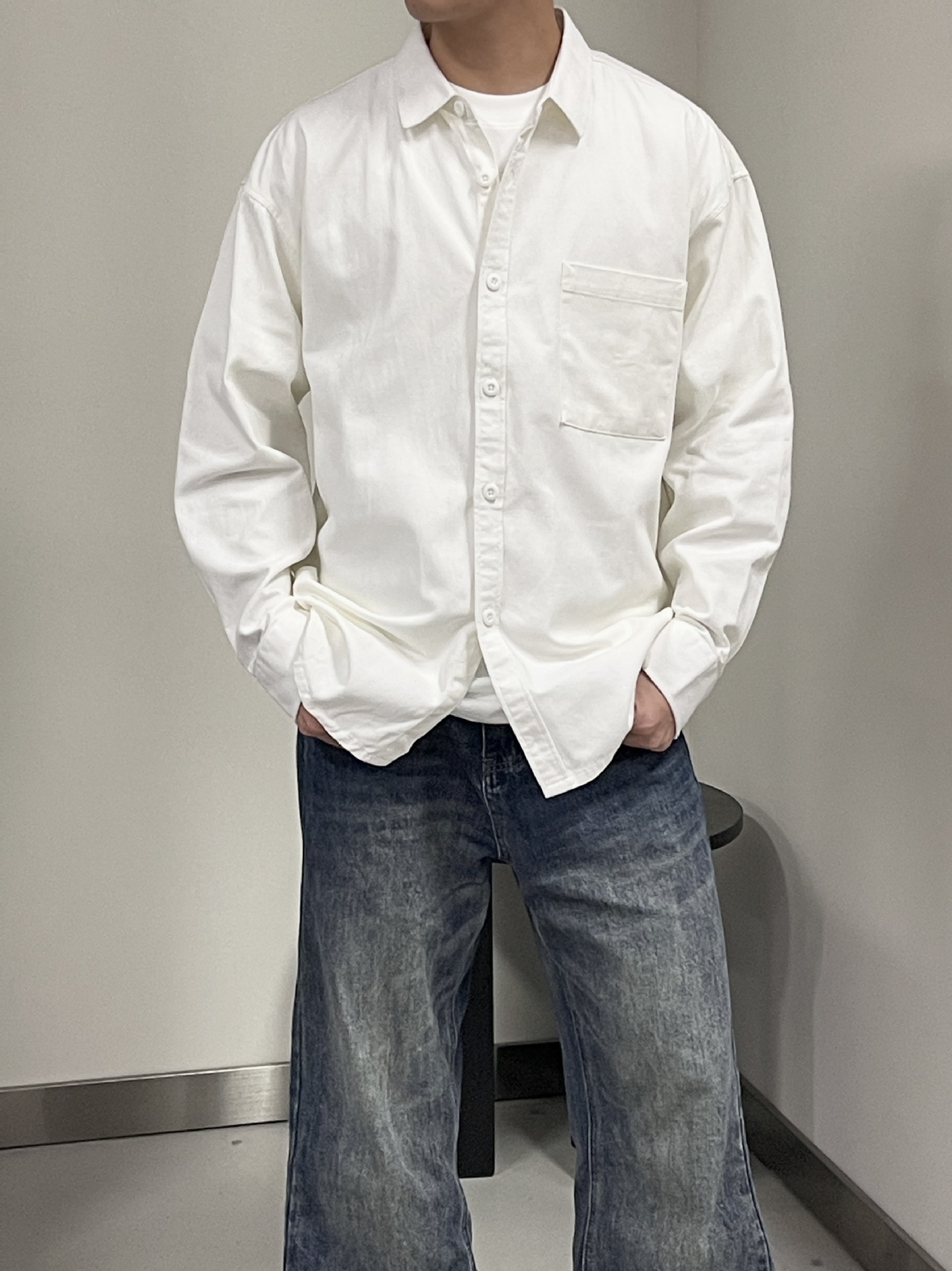 헤비 퓨어 코튼 긴팔 셔츠 남자의 요정 싱글 제품 하이 엔드 느낌 빌어 먹을 몇 가지 세련된 남성용 캐주얼 셔츠스토어 가기